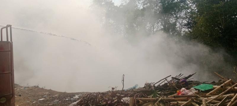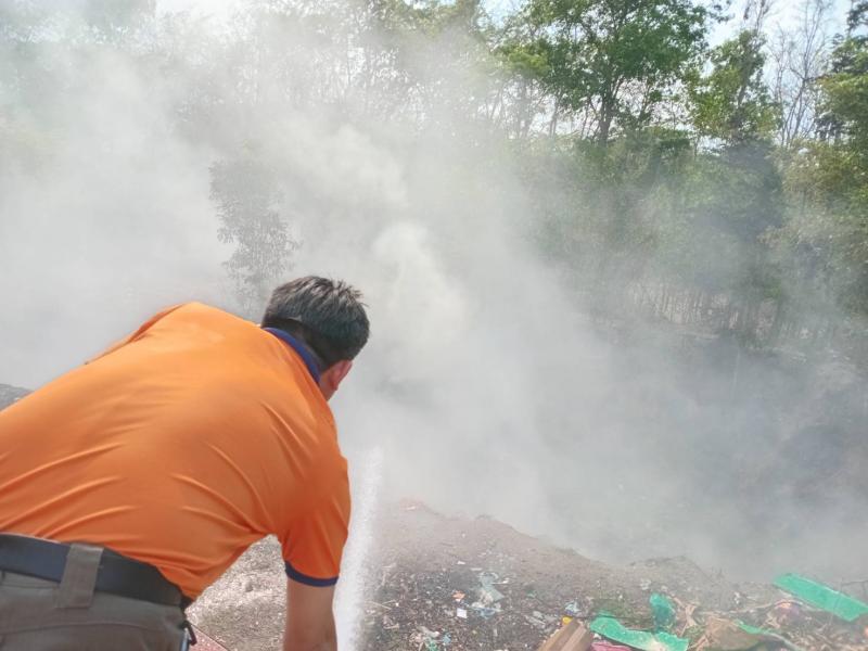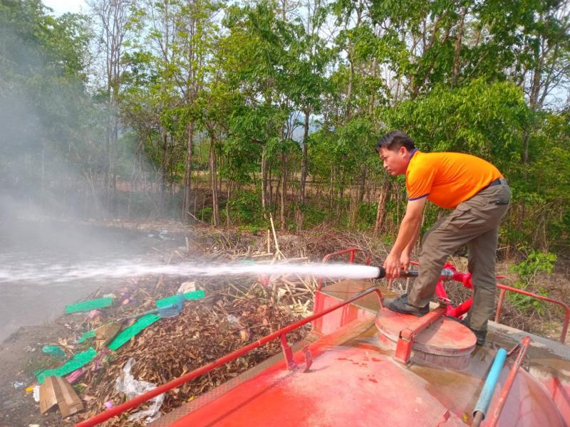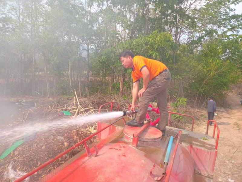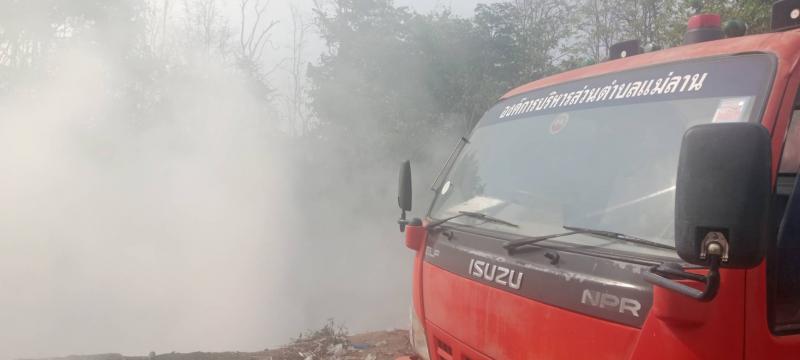 ลงพื้นที่นำรถบรรทุกน้ำดับไฟไหม้ บริเวณบ่อขยะบ้านเด่นเหม้า หมู่ที่ 5 ตำบลแม่ลาน อำเภอลี้ จังหวัดลำพูน