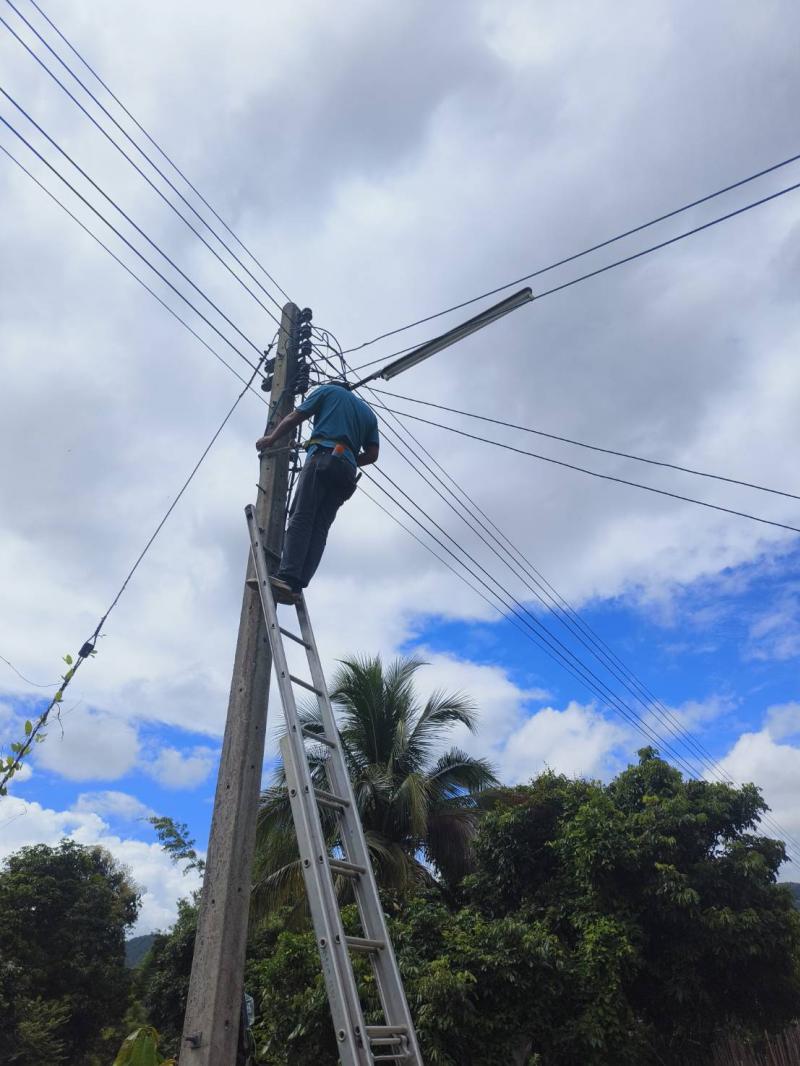 ลงพื้นที่ทำการซ่อมแซมไฟกิ่งสาธารณะ บ้านเด่นเหม้า หมู่ที่ 5 บ้านผาต้ายเหนือ หมู่ที่ 6 และบ้านหนองมะล้อ หมู่ที่ 2 ตำบลแม่ลาน อำเภอลี้ จังหวัดลำพูน