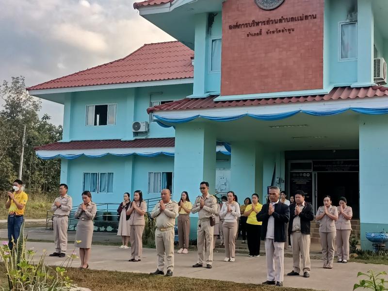วัน จันทร์ ที่ 18 ธันวาคม 2566 เวลา 08.30 น. องค์การบริหารส่วนตำบลแม่ลาน นำโดย นายโสภณ มีมัง นายกองค์การบริหารส่วนตำบลแม่ลาน พร้อมด้วยคณะผู้บริหาร ปลัดองค์การบริหารส่วนตำบลแม่ลาน หัวหน้าส่วนราชการ ข้าราชการ และพนักงาน เจ้าหน้าที่องค์การบริหารส่วนตำบลแม่ลาน ได้ดำเนินกิจกรรม เข้าแถวเคารพธงชาติสร้างความจงรักภักดีต่อสถาบันชาติ ศาสนา และ พระมหากษัตริย์ เพื่อเป็นการสนับสนุนคุณธรรมจริยธรรมให้แก่คณะผู้บริหาร พนักงานองค์การบริหารส่วนตำบลแม่ลาน ส่งเสริมสร้างความจงรักภักดี ต่อสถาบันชาติ ศาสนา และพระมหากษัตริย์ ทั้งการแจ้งข้อมูลข่าวสารงานต่างๆ แก่พนักงาน เพื่อให้มีลักษณะเป็นองค์กรแห่งการเรียนรู้อย่างสม่ำเสมอ เพื่อนำมาประยุกต์ใช้ในการปฏิบัติ ราชการได้อย่างถูกต้อง รวดเร็ว และเหมาะสมกับสถานการณ์ มีประสิทธิภาพและพร้อมที่จะบริการประชาชน อย่างทั่วถึง ต่อไป ณ องค์การบริหารส่วนตำบลแม่ลาน อำเภอลี้ จังหวัดลำพูน