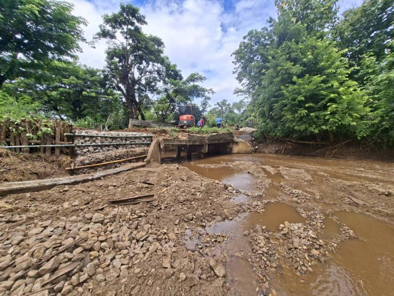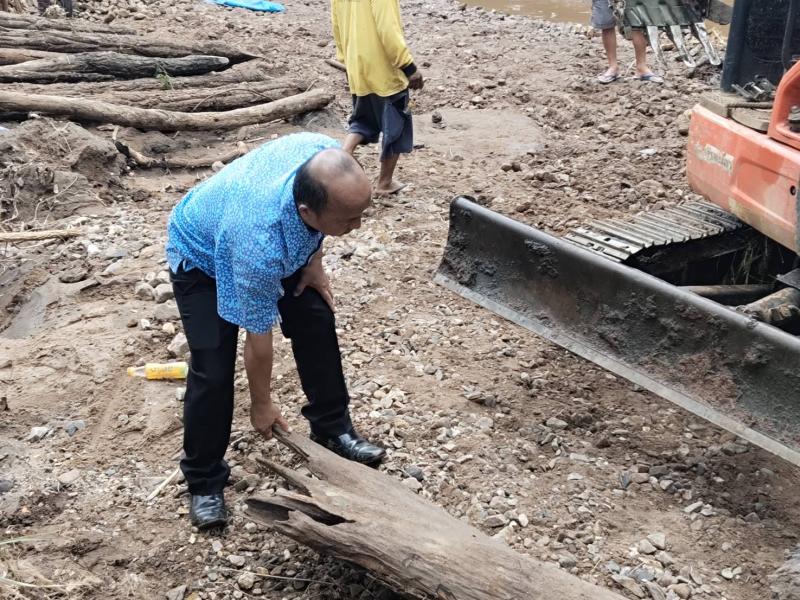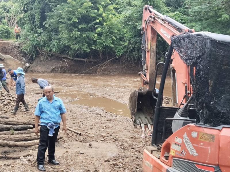 ลงพื้นที่ตรวจสอบและกำกับดูการดำเนินการซ่อมแซมถนนและคอสะพานข้ามห้วยแม่หาด บ้านห้วยทรายขาว หมู่ที่ 7 ตำบลแม่ลาน อำเภอลี้ จังหวัดลำพูน เพื่อแก้ไขและบรรเทาปัญหาความเดือดร้อนเป็นการเบื้องต้น
