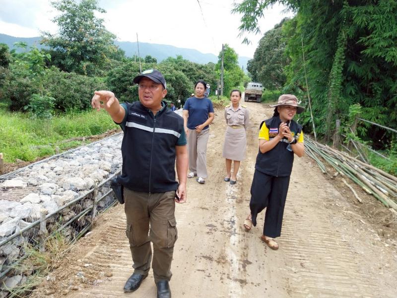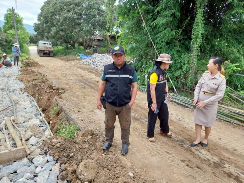 ลงพื้นที่ดำเนินการติดตามความคืบหน้า โครงการวางกล่องเกเบี้ยนป้องกันไหล่ทาง บริเวณถนนและสะพานทางไปบ่อหิน ห้วยป่ายุบ บ้านแม่ลาน หมู่ที่ 3 ตำบลแม่ลาน อำเภอลี้ จังหวัดลำพูน