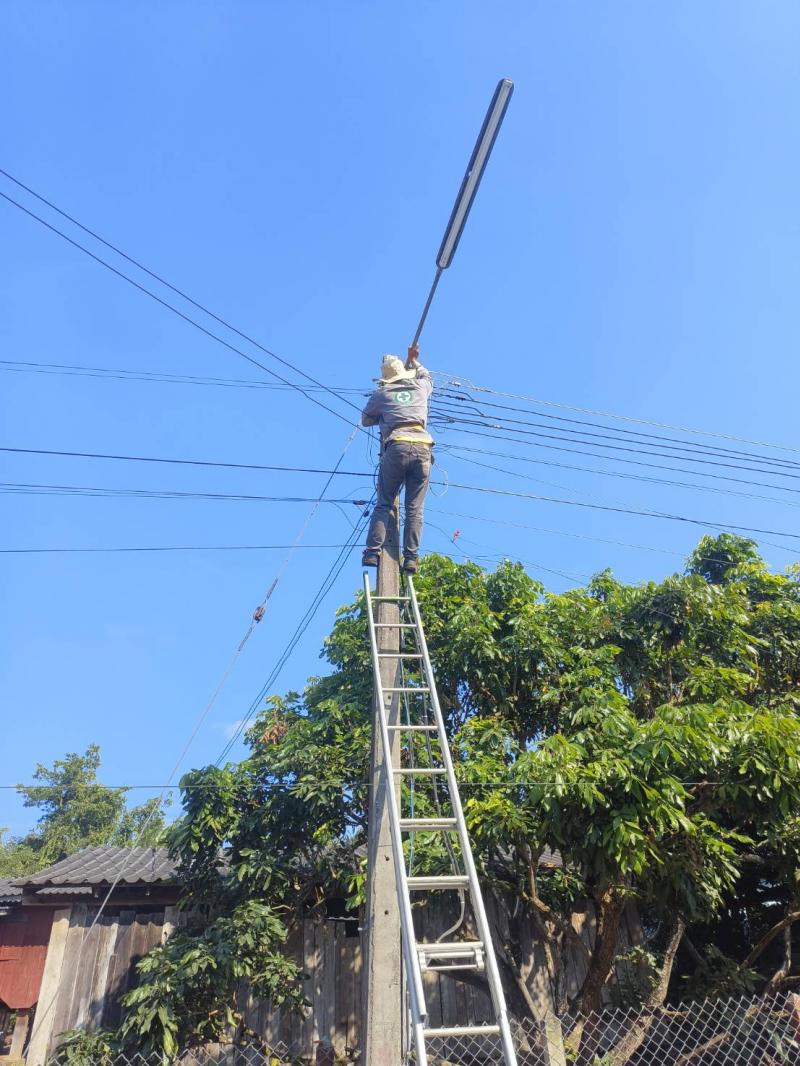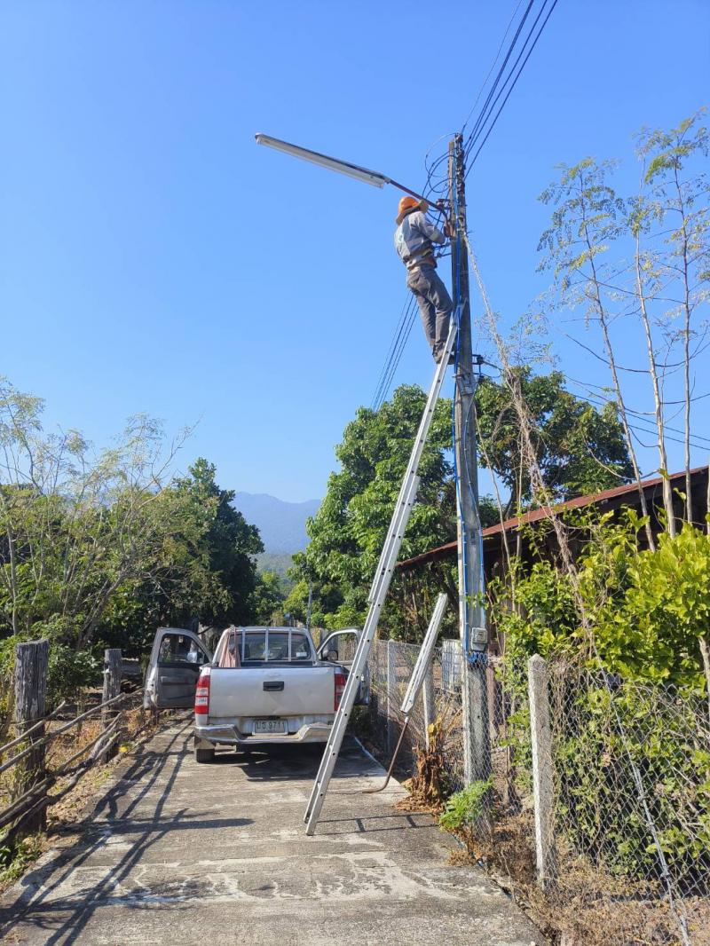 ลงพื้นที่ทำการซ่อมแซมไฟกิ่งสาธารณะ บ้านแม่กองวะ หมู่ที่ 4 และบ้านห้วยทรายขาว หมู่ที่ 7 ตำบลแม่ลาน อำเภอลี้ จังหวัดลำพูน