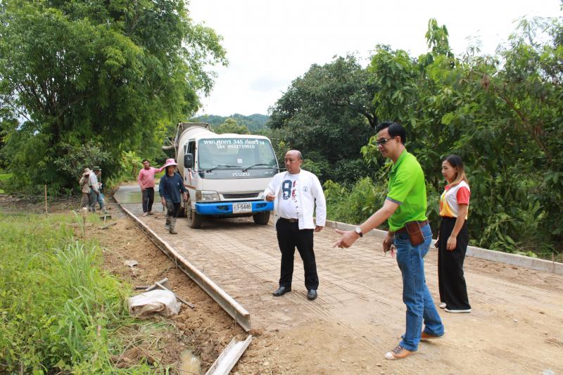 ลงพื้นที่ตรวจดูการดำเนินงาน โครงการก่อสร้างถนนคอนกรีตเสริมเหล็ก สายดงป่าส้าน บ้านเด่นเหม้า หมู่ที่ 5 อำเภอลี้ จังหวัดลำพูน