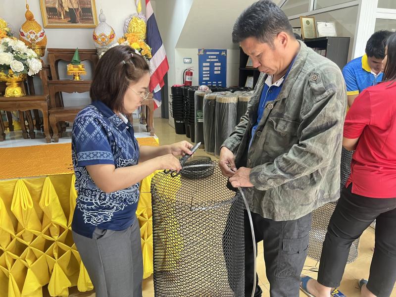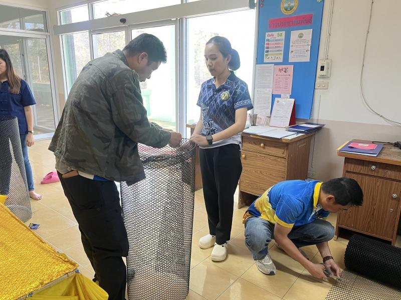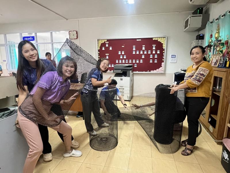 1.ตัดตาข่ายพลาสติกหรือตาข่ายอื่นๆ ยาวประมาณ 1 เมตร 50 เซนติเมตร