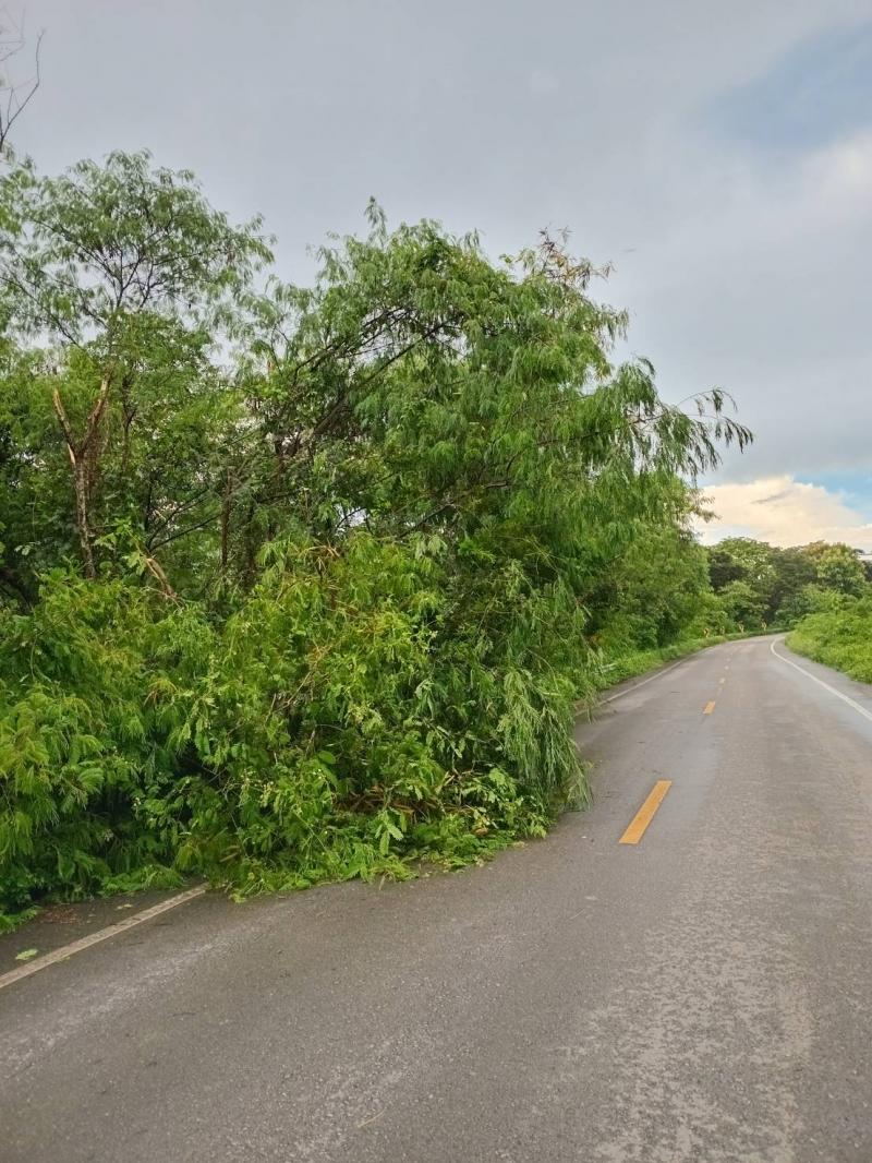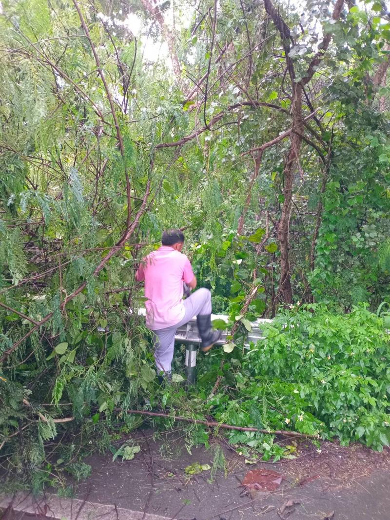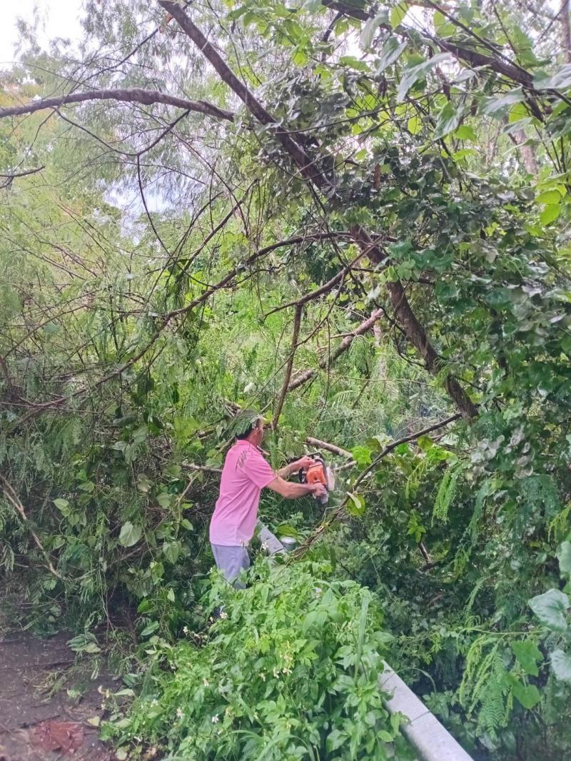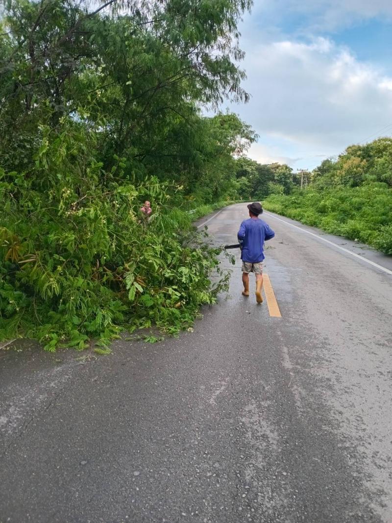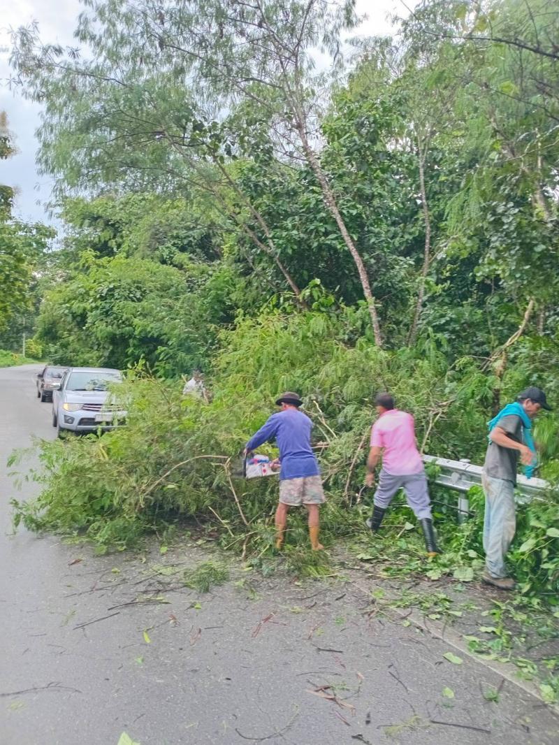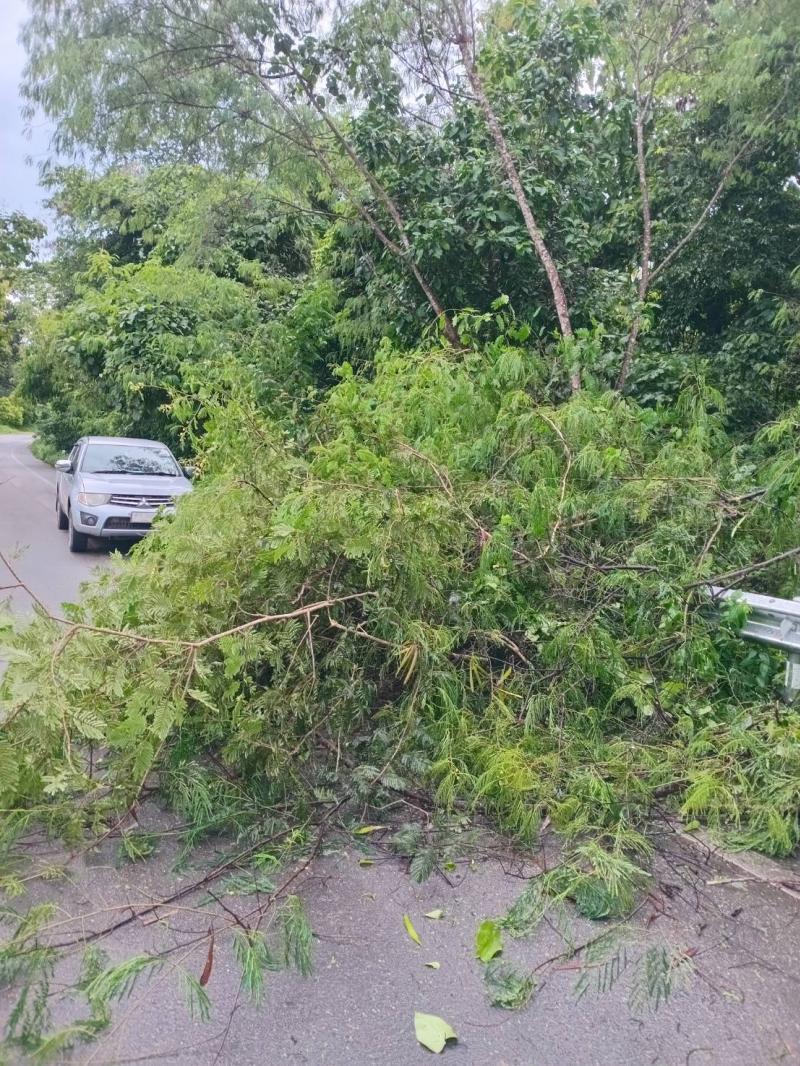 ดำเนินการตัดต้นไม้ที่ล้มทับกีดขวางทางจราจร บริเวณบ้านเด่นเหม้า หมู่ที่ 5 ตำบลแม่ลาน อำเภอลี้ จังหวัดลำพูน