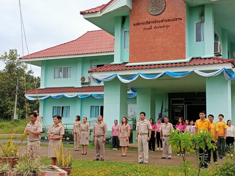 วัน อังคาร ที่ 24 กันยายน 2567 เวลา 08.30 น. องค์การบริหารส่วนตำบลแม่ลาน นำโดย นายโสภณ มีมัง นายกองค์การบริหารส่วนตำบลแม่ลาน พร้อมด้วยคณะผู้บริหาร หัวหน้าส่วนราชการ ข้าราชการ และพนักงาน เจ้าหน้าที่องค์การบริหารส่วนตำบลแม่ลาน ได้ดำเนินกิจกรรม เข้าแถวเคารพธงชาติสร้างความจงรักภักดีต่อสถาบันชาติ ศาสนา และ พระมหากษัตริย์ เพื่อเป็นการสนับสนุนคุณธรรมจริยธรรมให้แก่คณะผู้บริหาร พนักงานองค์การบริหารส่วนตำบลแม่ลาน ส่งเสริมสร้างความจงรักภักดี ต่อสถาบันชาติ ศาสนา และพระมหากษัตริย์ ทั้งการแจ้งข้อมูลข่าวสารงานต่างๆ แก่พนักงาน เพื่อให้มีลักษณะเป็นองค์กรแห่งการเรียนรู้อย่างสม่ำเสมอ เพื่อนำมาประยุกต์ใช้ในการปฏิบัติ ราชการได้อย่างถูกต้อง รวดเร็ว และเหมาะสมกับสถานการณ์มีประสิทธิภาพและพร้อมที่จะบริการประชาชนอย่างทั่วถึงต่อไป ณ องค์การบริหารส่วนตำบลแม่ลาน อำเภอลี้ จังหวัดลำพูน