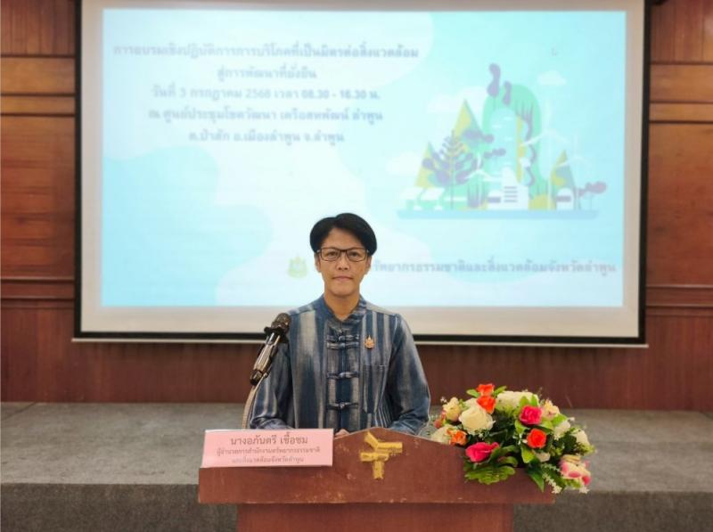 จัดโดย สำนักงานทรัพยากรธรรมชาติและสิ่งแวดล้อม จังหวัดลำพูน ดำเนินโครงการเสริมสร้างการมีส่วนร่วมในการจัดการสิ่งแวดล้อม เพื่อการพัฒนาสู่เมืองที่เป็นมิตรกับสิ่งแวดล้อมอย่างยั่งยืน ตามแผนปฏิบัติราชการประจำปี งบประมาณ พ.ศ. 2568 ในกิจกรรมการอบรมเชิงปฏิบัติการบริโภคที่เป็นมิตรต่อสิ่งแวดล้อมสู่การพัฒนาที่ยั่งยืน เพื่อส่งเสริมและปรับเปลี่ยน