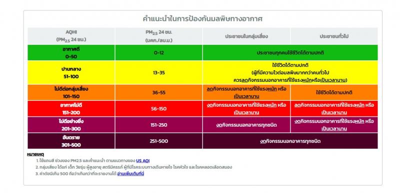 - ประชาชนทั่วไป ลดกิจกรรมนอกบ้านที่ใช้แรงหนักหรือเป็นเวลานาน จนกว่าอากาศจะดีขึ้น"