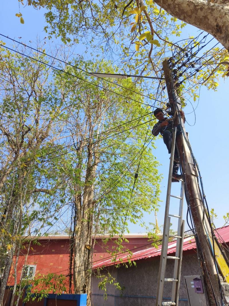 ลงพื้นที่ทำการซ่อมแซมไฟกิ่งสาธารณะ บ้านเด่นเหม้า หมู่ที่ 5 ตำบลแม่ลาน อำเภอลี้ จังหวัดลำพูน