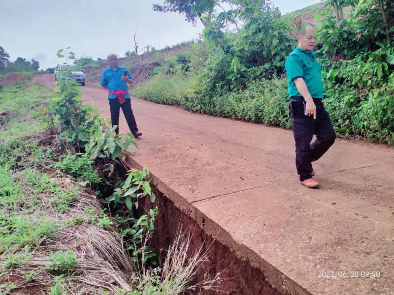 วันที่ 28 มิถุนายน 2566 องค์การบริหารส่วนตำบลแม่ลาน นำโดย นายโสภณ มีมัง นายกองค์การบริหารส่วนตำบลแม่ลาน พร้อมด้วย นายเสาร์คำ แก้วปลูก รองนายกองค์การบริหารส่วนตำบลแม่ลาน ผู้อำนวยการกองช่าง พนักงานและเจ้าหน้าที่องค์การบริหารส่วนตำบลแม่ลาน ลงพื้นที่สำรวจถนนการเกษตรที่มีความเสี่ยงต่อการทรุดตัว บริเวณบ้านผาต้ายเหนือ หมู่ที่ 6 และฝายบ้านผาต้าย หมู่ที่ 1 ตำบลแม่ลาน อำเภอลี้ จังหวัดลำพูน เพื่อดำเนินการซ่อมแซม