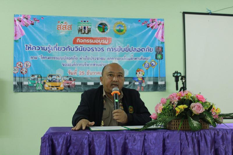 ได้ดำเนินกิจกรรมอบรมให้ความรู้เกี่ยวกับวินัยจราจร การขับขี่ปลอดภัย ตาม "โครงการถนนปลอดภัย ห่วงใยประชาชน ลดความเหลี่ยมล้ำทางสังคม" เพื่อส่งเสริมให้ชุมชนท้องถิ่นจัดการตนเองสู่การเป็นชุมชนท้องถิ่นน่าอยู่ โดยสำนักงานกองทุนสนับสนุนการสร้างเสริมสุขภาพ (สสส.) ประเด็นขับเคลื่อนงาน โครงการถนนปลอดภัย ห่วงใยประชาชน