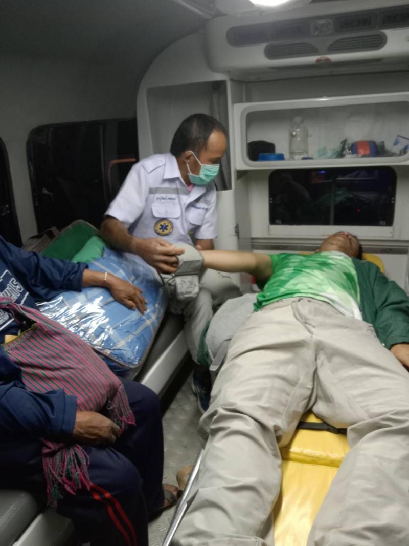 ออกเหตุรับผู้ป่วย บ้านเด่นเหม้า หมู่ที่ 5 ตำบลแม่ลาน มีอาการหายใจเหนื่อยหอบ มือเท้าบวม นำตัวส่งโรงพยาบาลลี้ อำเภอลี้ จังหวัดลำพูน เพื่อทำการรักษาต่อไป
