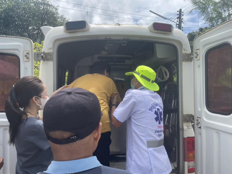 ออกเหตุรับผู้ป่วย บ้านห้วยทรายขาว หมู่ที่ 7 ตำบลแม่ลาน นำตัวส่งโรงพยาบาลลี้ อำเภอลี้ จังหวัดลำพูน เพื่อทำการรักษาต่อไป