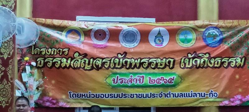 วันที่ 26 สิงหาคม 2565 เวลา 19.00 น. องค์การบริหารส่วนตำบลแม่ลาน นำโดย นายโสภณ มีมัง นายกองค์การบริหารส่วนตำบลแม่ลาน พร้อมคณะผู้บริหาร สมาชิกสภาองค์การบริหารส่วนตำบลแม่ลาน กำนันผู้ใหญ่บ้าน ประชาชนตำบลแม่ลานและตำบลก้อ เข้าร่วมฟังเทศน์ ธรรมสัญจร แสดงธรรมโดย พระครูใบฏีกาสมศักดิ์ ปิยวณฺโณ(ตุ๊ลุงสมศักดิ์) ในโครงการธรรมสัญจรเข้าพรรษา เข้าถึงธรรม ประจำปี 2565 หน่วยอบรมประชาชนประจำตำบลแม่ลาน-ตำบลก้อ โดยมี นายวิวัฒน์ จันทร์โอภาส นายอำเภอลี้ เป็นประธานในพิธี ณ วัดเด่นเหม้า ตำบลแม่ลาน อำเภอลี้ จังหวัดลำพูน