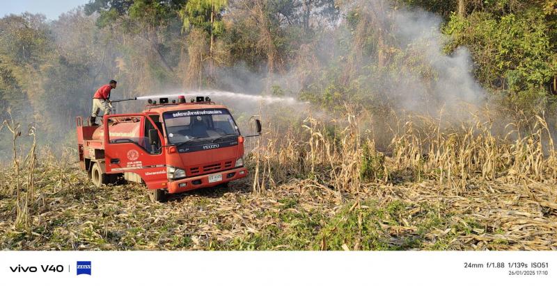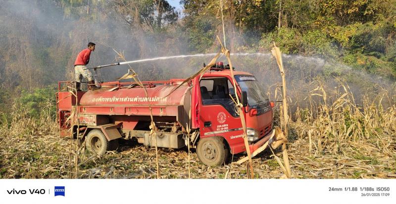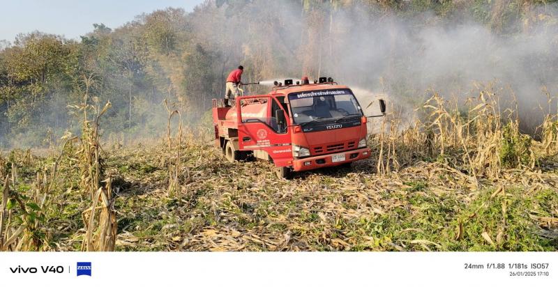 ลงพื้นที่นำรถบรรทุกน้ำดับไฟไหม้ บริเวณพื้นที่บ้านหนองมะล้อ หมู่ที่ 2 ตำบลแม่ลาน อำเภอลี้ จังหวัดลำพูน