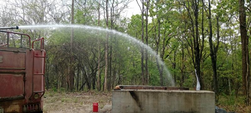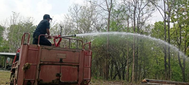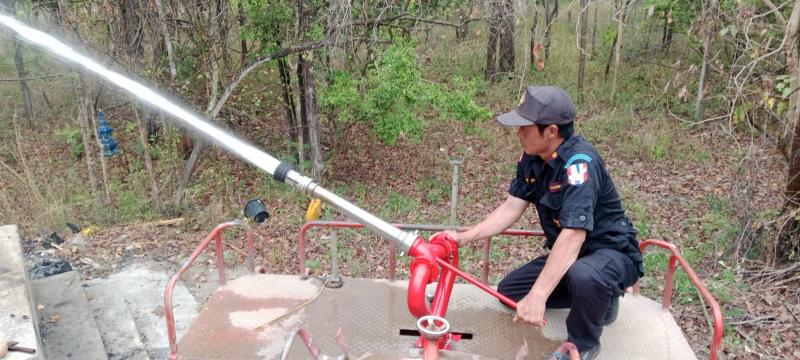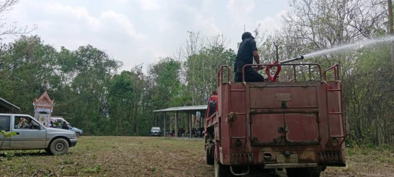 ลงพื้นที่พรมน้ำรอบบริเวณ สุสานห้วยหนามโก้ง บ้านหนองมะล้อ หมู่ที่ 2 ตำบลแม่ลาน อำเภอลี้ จังหวัดลำพูน เนื่องจากมีงานฌาปนกิจ อาจทำให้เกิดไฟลุกลามได้