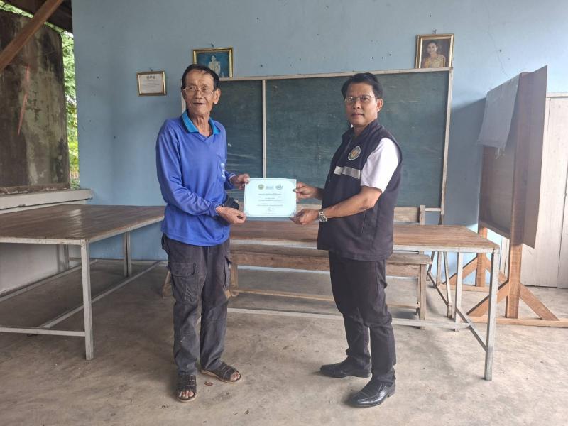 มอบเกียรติบัตรให้แก่ผู้ร่วมโครงการอบรมเชิงปฏิบัติการให้ความรู้โรคไข้เลือดออก ที่ผ่านคัดเลือก บ้านสะอาด ปลอดลูกน้ำยุงลาย ห่างไกลโรคไข้เลือดออก