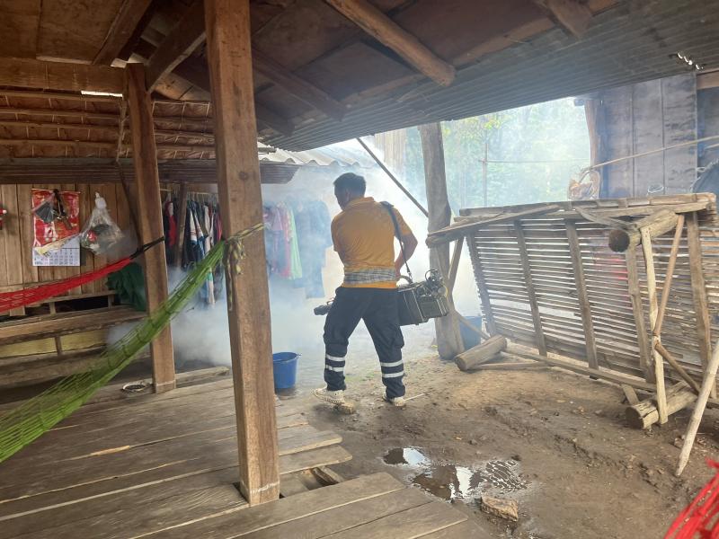วันที่ 29 สิงหาคม 2567 องค์การบริหารส่วนตำบลแม่ลาน โดย นายโสภณ มีมัง นายกองค์การบริหารส่วนตำบลแม่ลาน มอบหมายให้ นางสาวนริศรา ใจสุยะ เจ้าพนักงานสาธารณสุขปฏิบัติงาน และ เจ้าหน้าที่องค์การบริหารส่วนตำบลแม่ลาน ร่วมกับ รพ.สต.แม่ลาน และ อสม.บ้านหนองมะล้อ ลงพื้นที่ดำเนินการพ่นหมอกควัน เพื่อกำจัดยุงตัวแก่ และควบคุมการระบาดของโรคไข้เลือดออก บริเวณบ้านผู้ป่วย บ้านหนองมะล้อ หมู่ที่ 2 ตำบลแม่ลาน อำเภอลี้ จังหวัดลำพูน ระยะ 100 เมตร ครั้งที่ 2