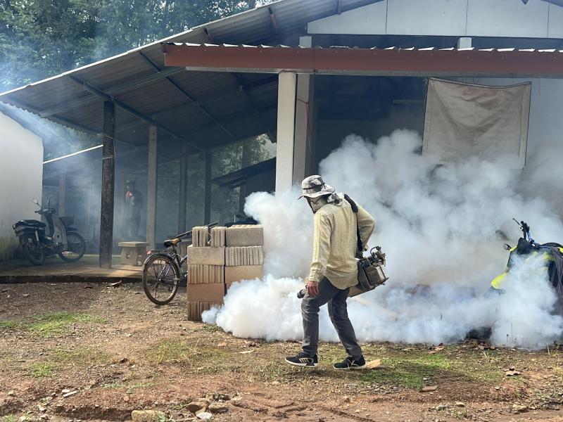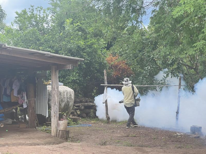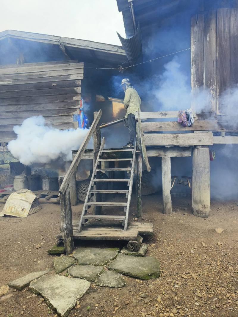 วันที่ 2 กันยายน 2567 องค์การบริหารส่วนตำบลแม่ลาน โดย นายโสภณ มีมัง นายกองค์การบริหารส่วนตำบลแม่ลาน มอบหมายให้ นางสาวนริศรา ใจสุยะ เจ้าพนักงานสาธารณสุข และ เจ้าหน้าที่องค์การบริหารส่วนตำบลแม่ลาน ร่วมกับ รพ.สต.แม่ลาน และ อสม.บ้านหนองมะล้อ ลงพื้นที่ดำเนินการพ่นหมอกควัน และสำรวจลูกน้ำ ทำลายแหล่งเพาะพันธุ์ลูกน้ำยุงลาย เพื่อกำจัดยุงตัวแก่ และควบคุมการระบาดของโรคไข้เลือดออก บริเวณบ้านผู้ป่วย บ้านหนองมะล้อ หมู่ที่ 2 ตำบลแม่ลาน อำเภอลี้ จังหวัดลำพูน ระยะ 100 เมตร ครั้งที่ 3