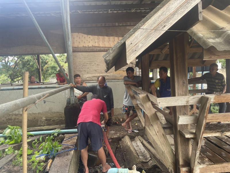ลงพื้นที่เป่าล้างท่อน้ำอุดตัน บ้านแม่กองวะ หมู่ที่ 4 ตำบลแม่ลาน อำเภอลี้ จังหวัดลำพูน เพื่อให้ท่อน้ำที่ใช้มีความสะอาด และป้องกันไม่ให้ทรายอุดตันบ่อ