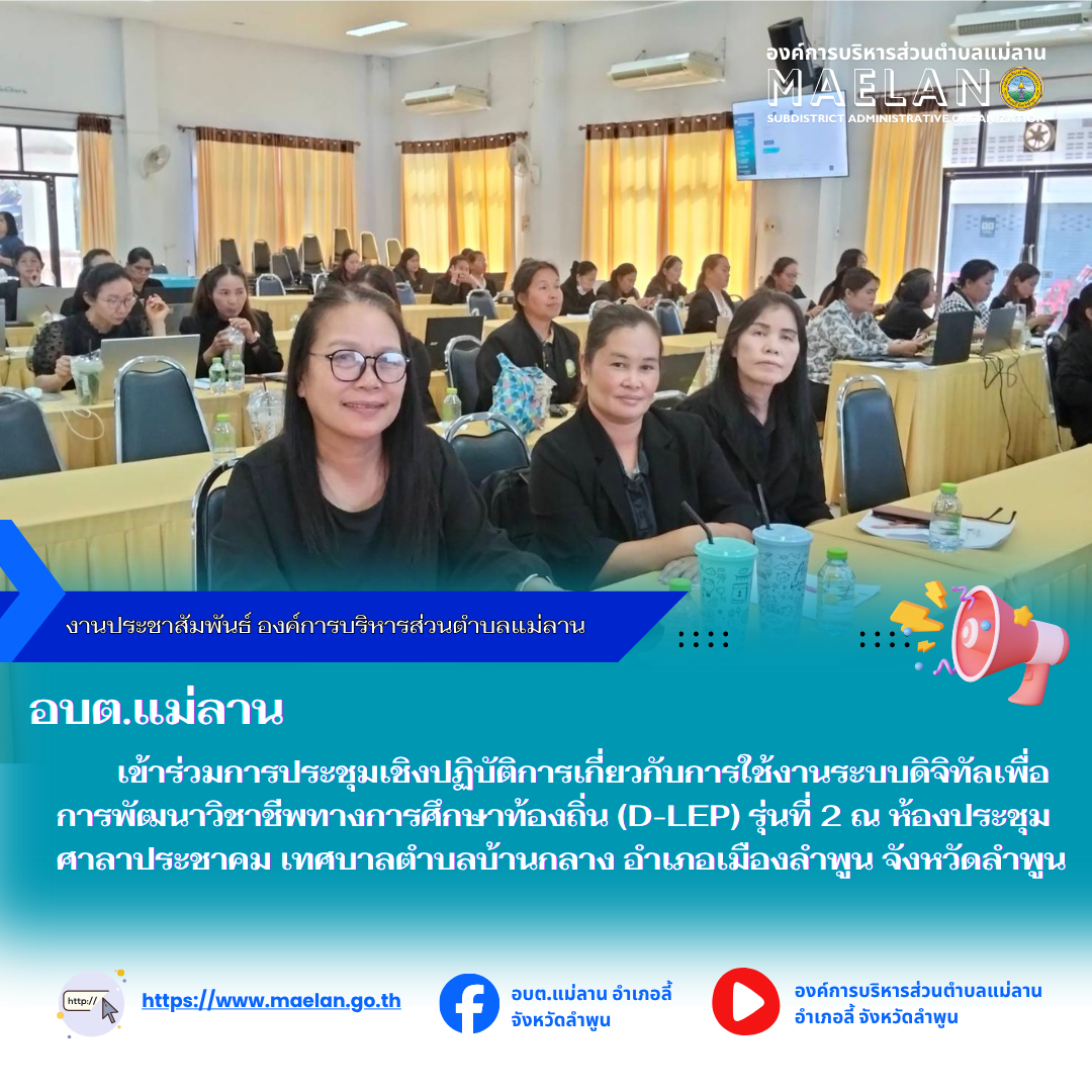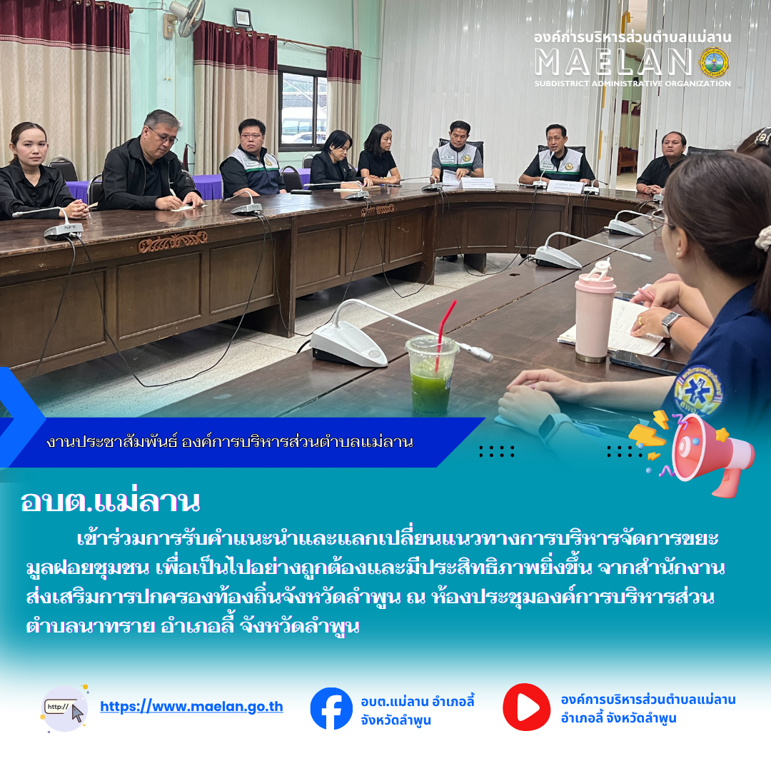 นที่ 13 พฤศจิกายน 2568 เวลา 09.30 น. องค์การบริหารส่วนตำบลแม่ลาน โดย นายโสภณ มีมัง นายกองค์การบริหารส่วนตำบลแม่ลาน มอบหมายให้ นายสมพงษ์ ด้วงประสิทธิ์ ปลัดองค์การบริหารส่วนตำบลแม่ลาน นางสาวนริศรา ใจสุยะ... [13 พฤศจิกายน 2568]