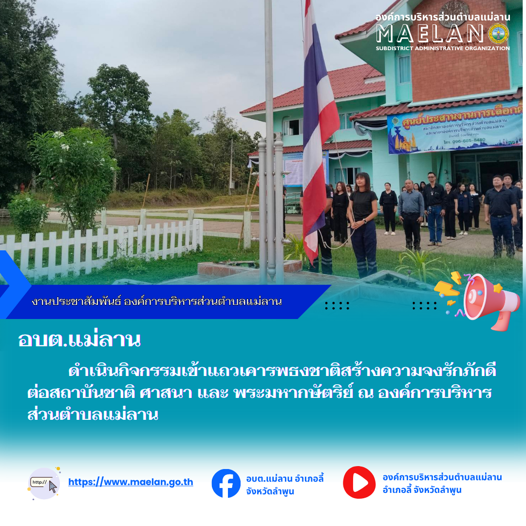 วันจันทร์ ที่ 17 พฤศจิกายน 2568 เวลา 08.30 น. องค์การบริหารส่วนตำบลแม่ลาน โดย นายโสภณ มีมัง นายกองค์การบริหารส่วนตำบลแม่ลาน พร้อมด้วย คณะบริหารองค์การบริหารส่วนตำบลแม่ลาน หัวหน้าส่วนราชการ และพนักงาน... [17 พฤศจิกายน 2568]