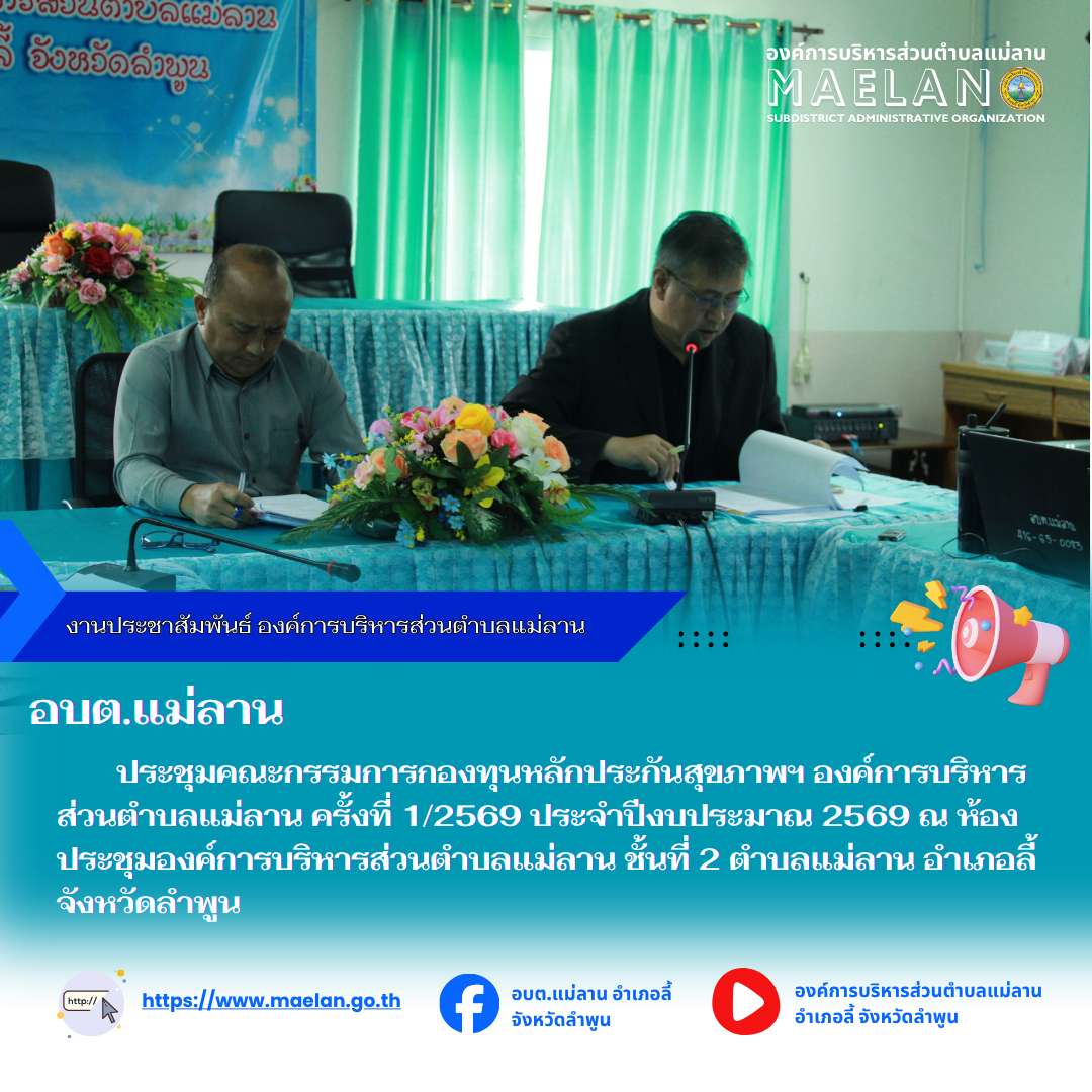 วันที่ 12 พฤศจิกายน 2568 เวลา 09.00 น. องค์การบริหารส่วนตำบลแม่ลาน โดย นายโสภณ มีมัง นายกองค์การบริหารส่วนตำบลแม่ลาน ดำรงตำแหน่ง ประธานคณะกรรมการบริหารกองทุนหลักประกันสุขภาพฯ องค์การบริหารส่วนตำบลแม่ลาน... [12 พฤศจิกายน 2568]
