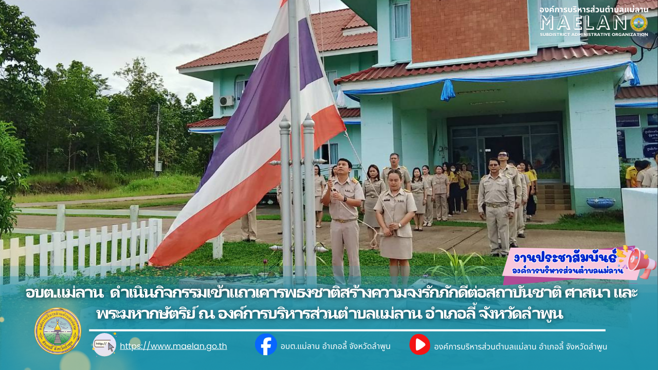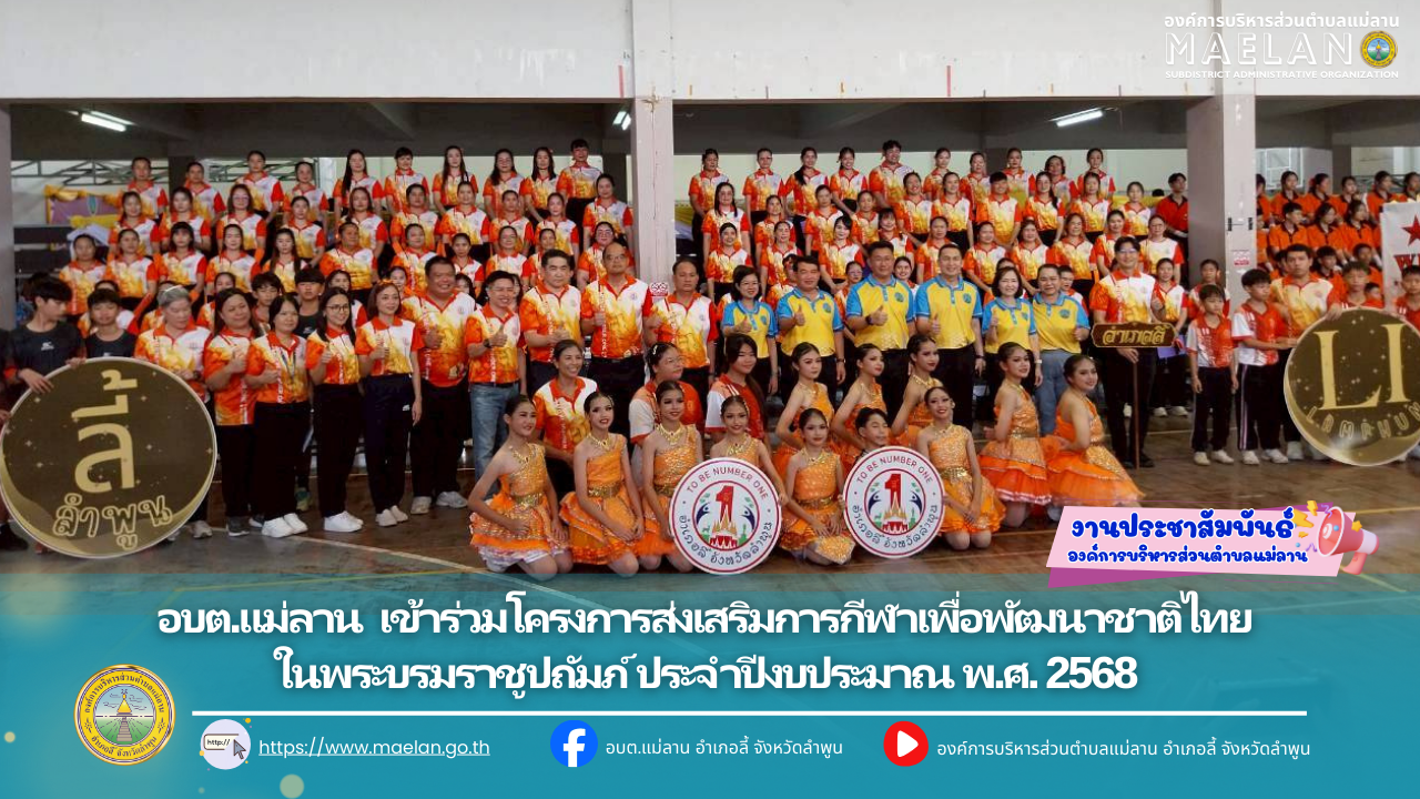 วันที่ 20 กันยายน 2568 เวลา 08.30 น. องค์การบริหารส่วนตำบลแม่ลาน โดย นายโสภณ มีมัง นายกองค์การบริหารส่วนตําบลแม่ลาน มอบหมายให้ นางชนันนิดา คำทา รองนายกองค์การบริหารส่วนตำบลแม่ลาน... [20 กันยายน 2568]