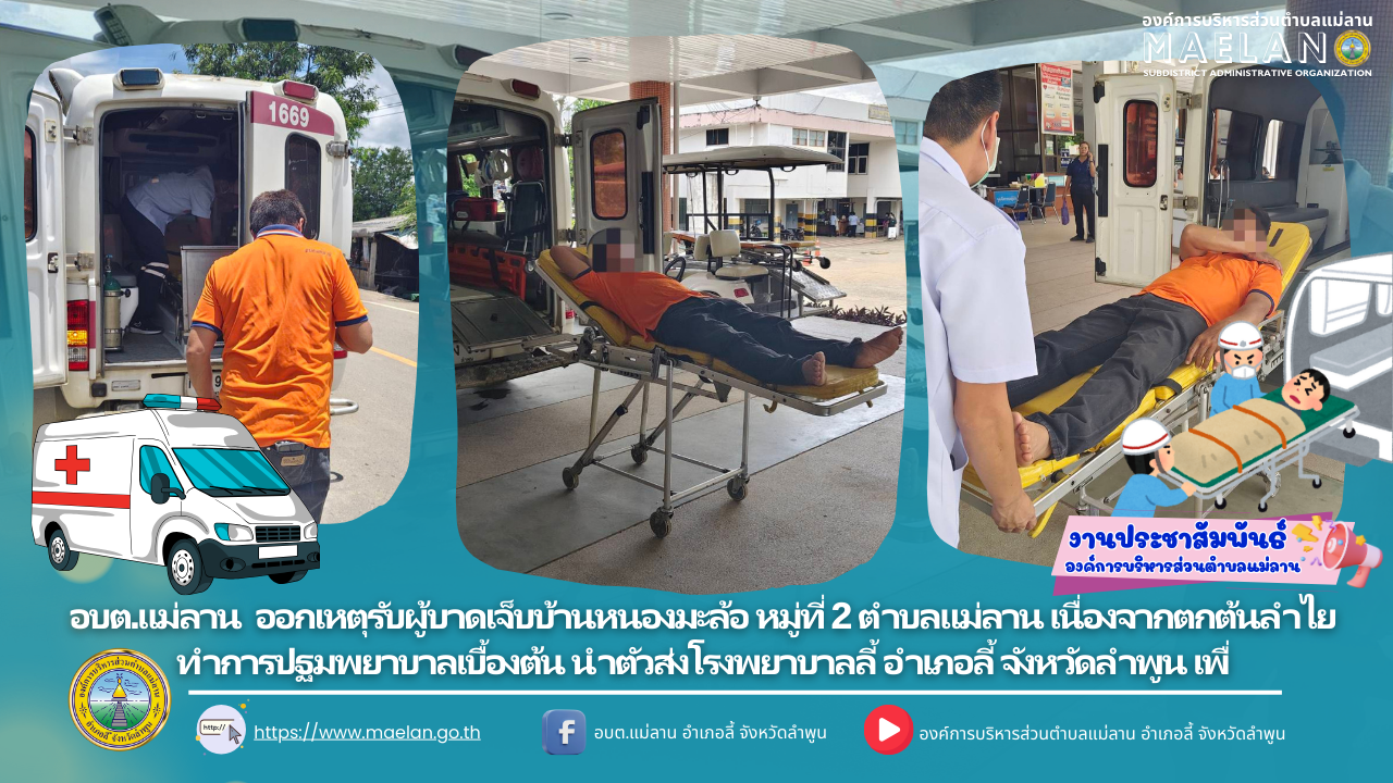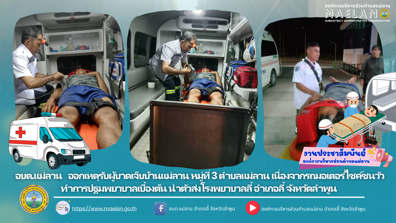 วันที่ 25 สิงหาคม 2568 องค์การบริหารส่วนตำบลแม่ลาน โดย นายโสภณ มีมัง นายกองค์การบริหารส่วนตำบลแม่ลาน มอบหมายให้เจ้าหน้าที่กู้ชีพองค์การบริหารส่วนตำบลแม่ลาน ออกเหตุรับผู้บาดเจ็บบ้านแม่ลาน หมู่ที่ 3... [25 สิงหาคม 2568]
