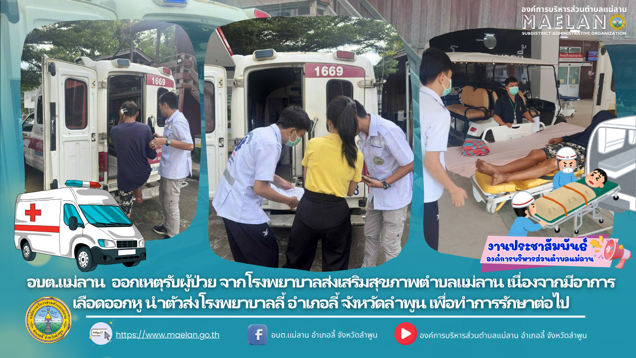 วันที่ 25 สิงหาคม 2568 องค์การบริหารส่วนตำบลแม่ลาน โดย นายโสภณ มีมัง นายกองค์การบริหารส่วนตำบลแม่ลาน มอบหมายให้เจ้าหน้าที่กู้ชีพองค์การบริหารส่วนตำบลแม่ลาน ออกเหตุรับผู้ป่วย... [25 สิงหาคม 2568]