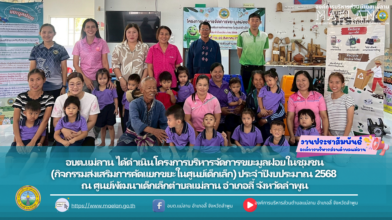 วันที่ 17 สิงหาคม 2568 องค์การบริหารส่วนตำบลแม่ลาน โดย นายโสภณ มีมัง นายกองค์การบริหารส่วนตำบลแม่ลาน มอบหมายให้ เจ้าหน้าที่องค์การบริหารส่วนตำบลแม่ลาน ร่วมกับ รพ.สต.แม่ลาน และ อสม.บ้านเด่นเหม้า ... [17 สิงหาคม 2568]