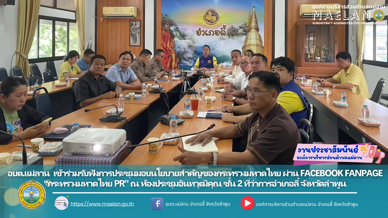 วันที่ 6 สิงหาคม 2568 องค์การบริหารส่วนตำบลแม่ลาน นำโดย นายโสภณ มีมัง นายกองค์การบริหารส่วนตำบลแม่ลาน พร้อมด้วย ปลัดองค์การบริหารส่วนตำบลแม่ลาน หัวหน้าสำนักปลัดองค์การบริหารส่วนตำบลแม่ลาน... [6 สิงหาคม 2568]