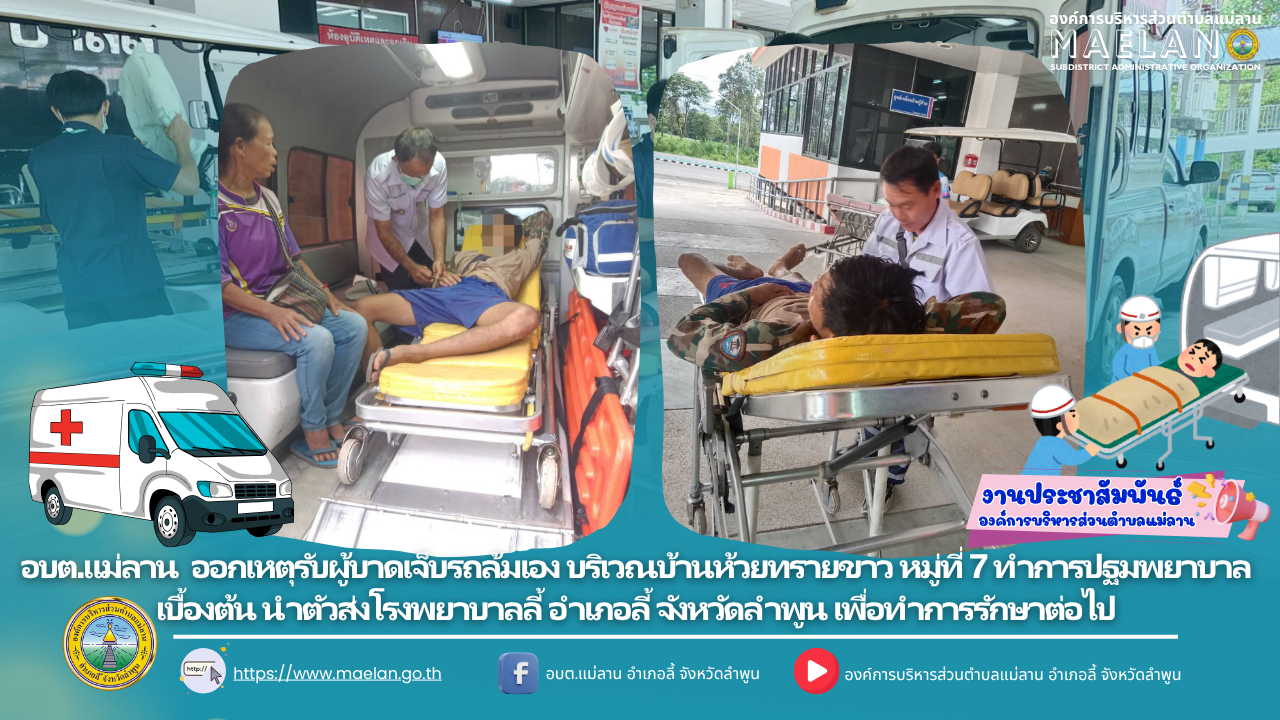 วันที่ 7 สิงหาคม 2568 องค์การบริหารส่วนตำบลแม่ลาน โดย นายโสภณ มีมัง นายกองค์การบริหารส่วนตำบลแม่ลาน มอบหมายให้เจ้าหน้าที่กู้ชีพองค์การบริหารส่วนตำบลแม่ลาน ออกเหตุรับผู้บาดเจ็บรถล้มเอง บริเวณบ้านห้วยทรายขาว... [7 สิงหาคม 2568]
