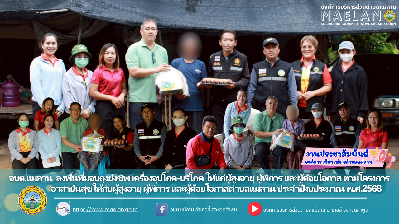 วันที่ 7 สิงหาคม 2568 องค์การบริหารส่วนตำบลแม่ลาน โดย นายโสภณ มีมัง นายกองค์การบริหารส่วนตำบลแม่ลาน มอบหมายให้เจ้าหน้าที่องค์การบริหารส่วนตำบลแม่ลาน รับผู้ป่วยจากโรงพยาบาลลี้ อำเภอลี้ จังหวัดลำพูน กลับบ้าน... [7 สิงหาคม 2568]