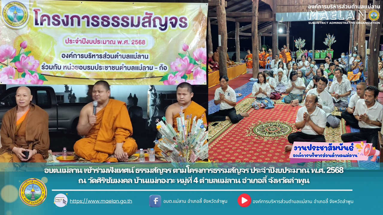 วันที่ 25 กรกฎาคม 2568 องค์การบริหารส่วนตำบลแม่ลาน นำโดย นายโสภณ มีมัง นายกองค์การบริหารส่วนตำบลแม่ลาน พร้อมด้วยคณะผู้บริหาร สมาชิกสภาองค์การบริหารส่วนตำบลแม่ลาน ข้าราชการ พนักงาน... [25 กรกฎาคม 2568]