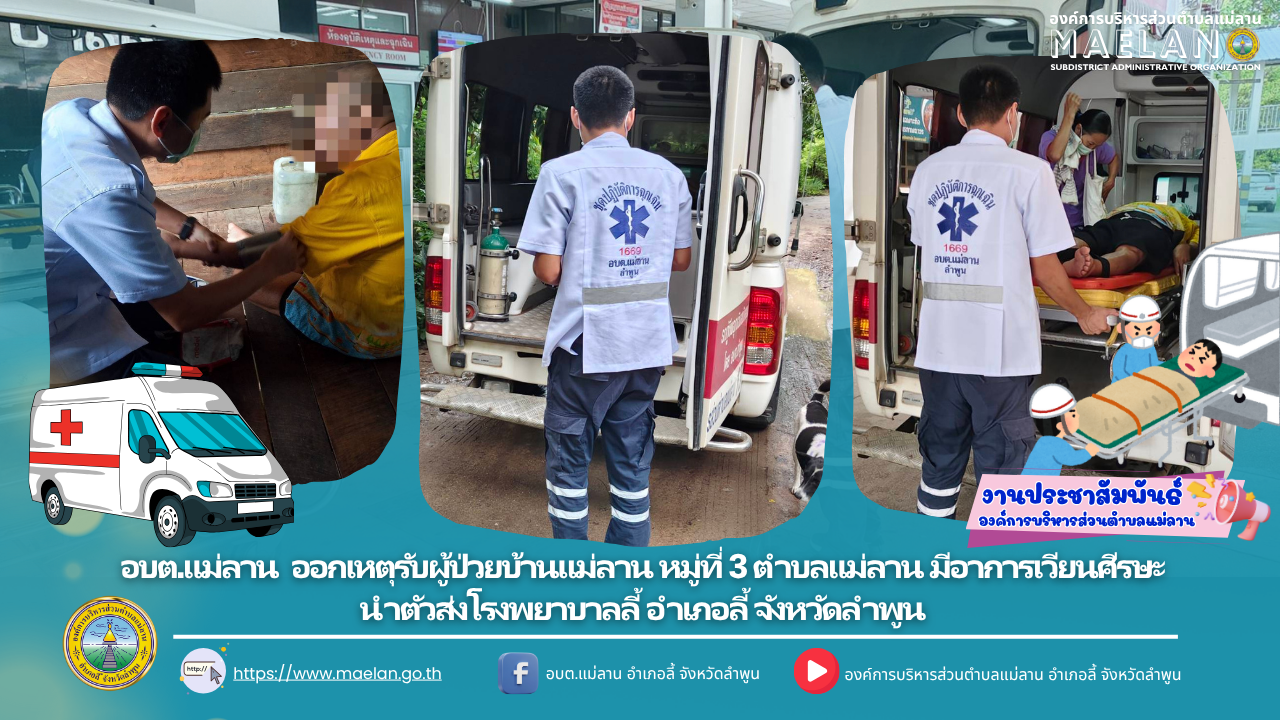 วันที่ 24 กรกฎาคม 2568 องค์การบริหารส่วนตำบลแม่ลาน โดย นายโสภณ มีมัง นายกองค์การบริหารส่วนตำบลแม่ลาน มอบหมายให้เจ้าหน้าที่กู้ชีพองค์การบริหารส่วนตำบลแม่ลาน ออกเหตุรับผู้ป่วยบ้านแม่ลาน หมู่ที่ 3 ตำบลแม่ลาน... [24 กรกฎาคม 2568]