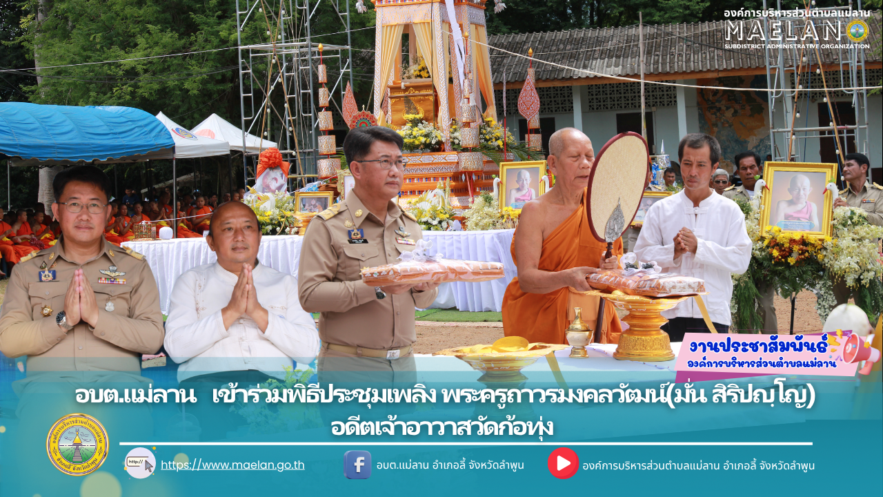 วันที่ 21 กรกฎาคม 2568 องค์การบริหารส่วนตำบลแม่ลาน นำโดย นายโสภณ มีมัง นายกองค์การบริหารส่วนตำบลแม่ลาน พร้อมด้วยคณะผู้บริหาร หัวหน้าส่วนราชการ ข้าราชการ และพนักงานเจ้าหน้าที่องค์การบริหารส่วนตำบลแม่ลาน... [22 กรกฎาคม 2568]