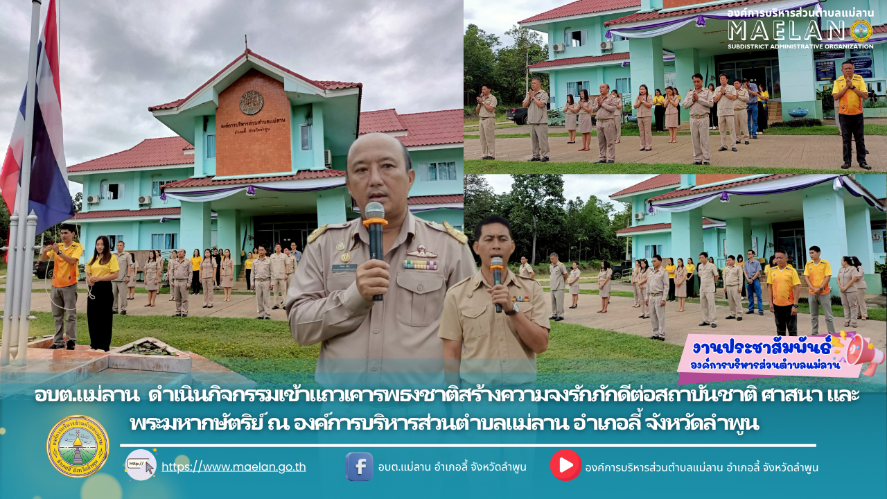 วัน จันทร์ ที่ 21 กรกฎาคม 2568 เวลา 08.30 น. องค์การบริหารส่วนตำบลแม่ลาน นำโดย นายโสภณ มีมัง นายกองค์การบริหารส่วนตำบลแม่ลาน พร้อมด้วยคณะผู้บริหาร หัวหน้าส่วนราชการ ข้าราชการ และพนักงาน... [21 กรกฎาคม 2568]