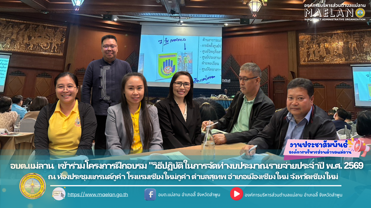 วันที่ 17 กรกฎาคม 2568 เวลา 09.00 น. องค์การบริหารส่วนตำบลแม่ลาน โดย นายโสภณ มีมัง นายกองค์การบริหารส่วนตำบลแม่ลาน มอบหมายให้ นางสาวนริศรา ใจสุยะ เจ้าพนักงานสาธารณสุขฯ องค์การบริหารส่วนตำบลแม่ลาน และพนักงาน... [17 กรกฎาคม 2568]