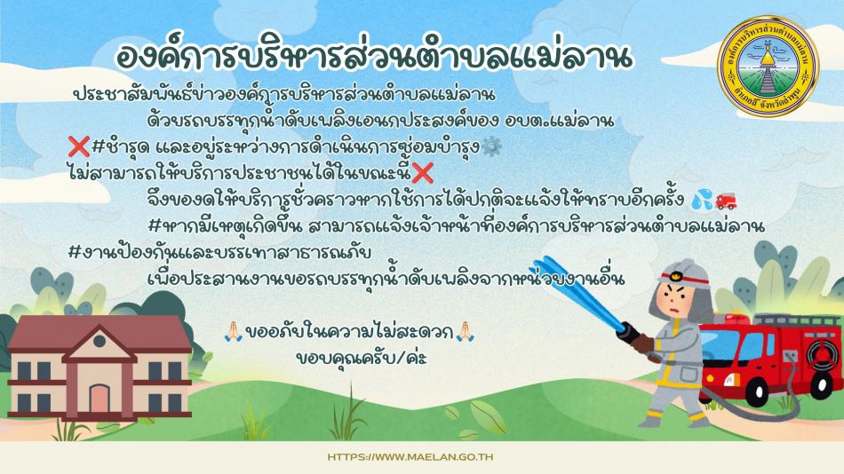 #แจ้งข่าว #ประชาสัมพันธ์องค์การบริหารส่วนตำบลแม่ลาน #งานกู้ชีพองค์การบริหารส่วนตำบลแม่ลาน [30 กันยายน 2567]