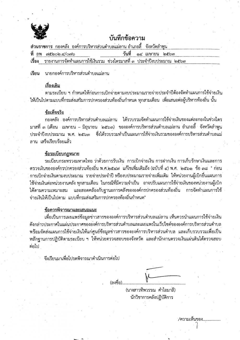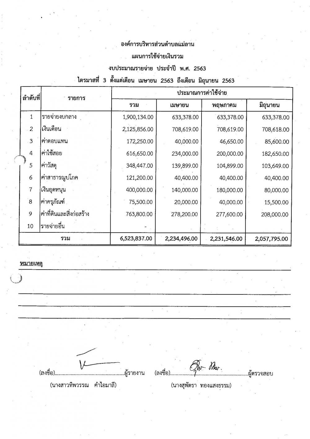 ประกาศ เรื่องแผนการใช้จ่ายเงินรวม ไตรมาสที่ ๓ ประจำปีงบประมาณ พ.ศ ๒๕๖๓