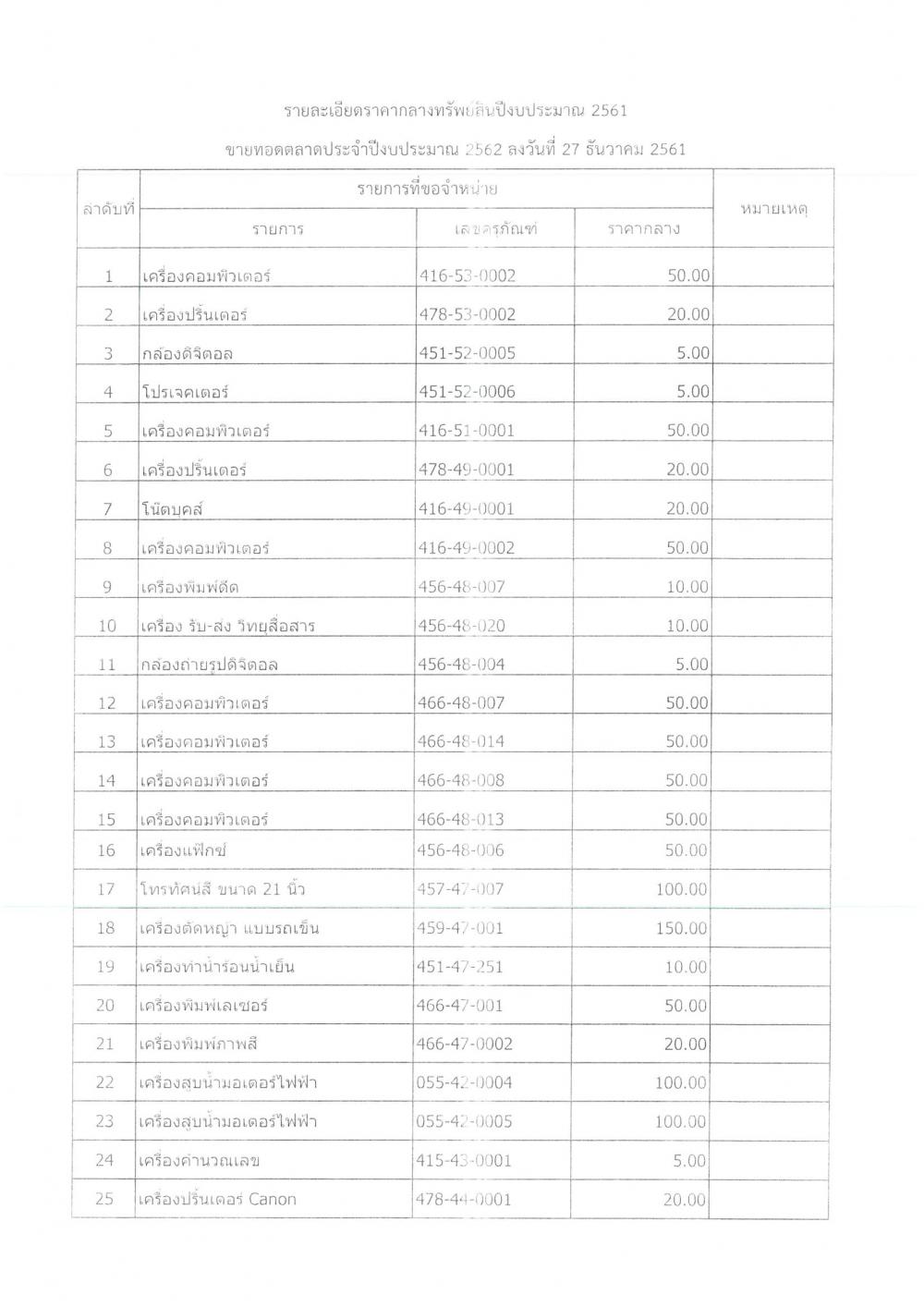 การขายพัสดุประเภทครุภัณฑ์ ที่ชำรุด และเสื่อมสภาพ โดยวิธีขายทอดตลาด ประจำปีงบประมาณ 2562