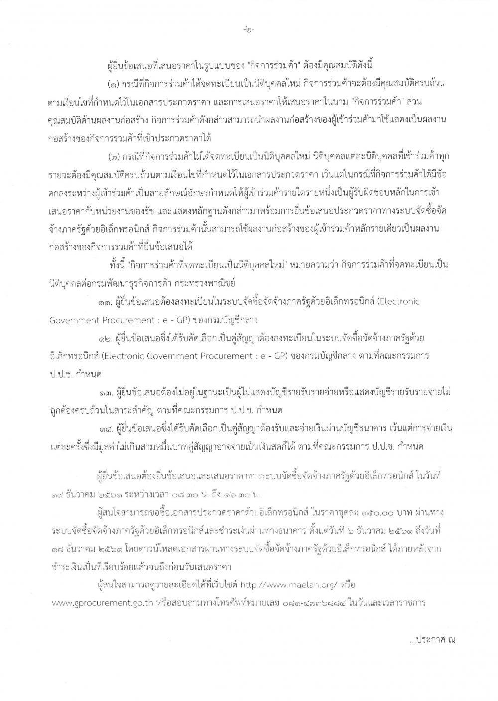 รายละเอียด : ประกวดราคาจ้างก่อสร้างโครงการก่อสร้าง/ปรับปรุงถนนแอสฟัลต์คอนกรีต ถนนลพ.3040 ด้วยวิธีประกวดราคาอิเล็กทรอนิกส์ (e-bidding) ราคากลางในการประกวดราคาครั้งนี้เป็นเงินทั้งสิ้น 5,036,202.05 บาท (ห้าล้าน สามหมื่นหกพันสองร้อยสองบาทห้าสตางค์)