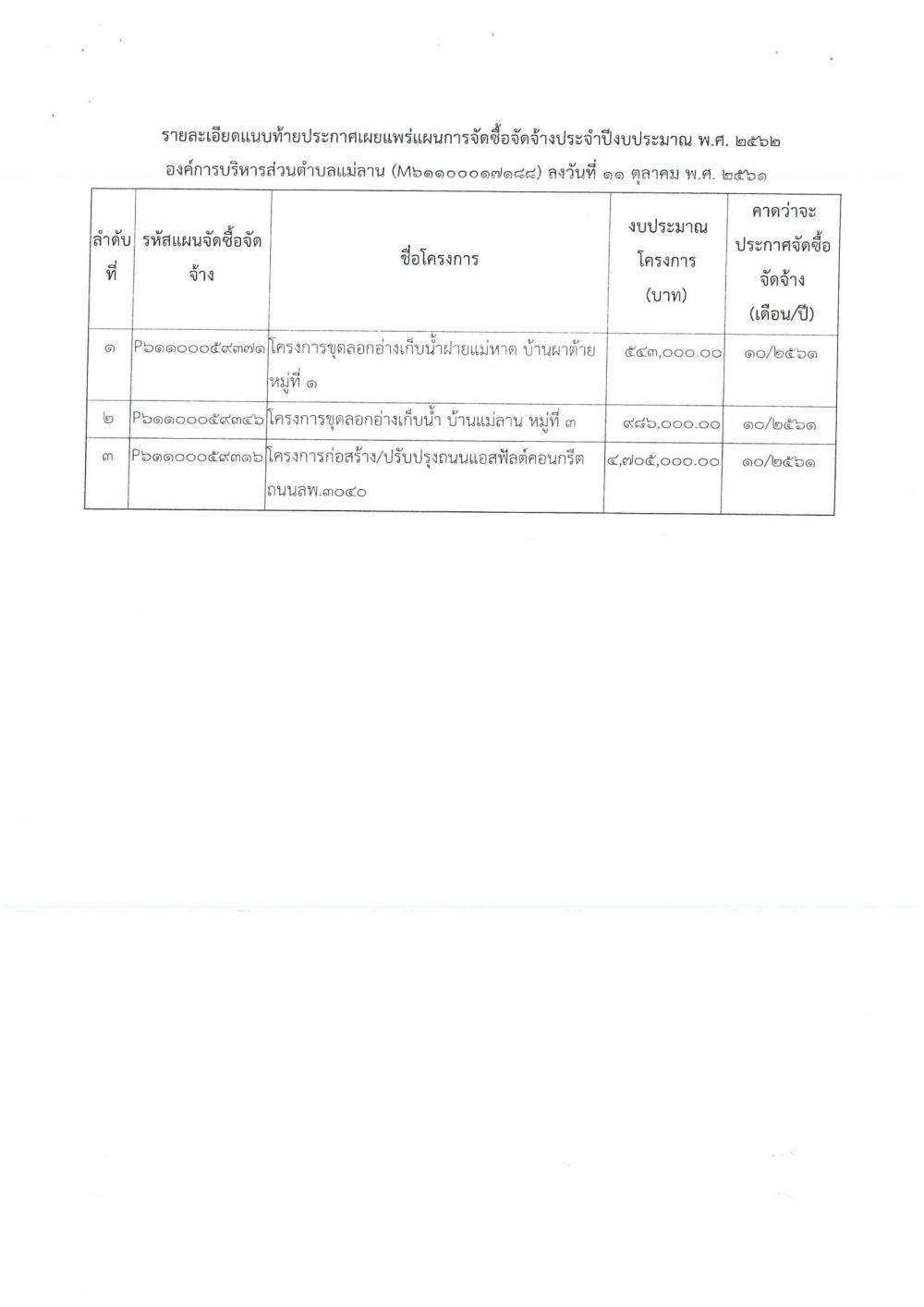 ชื่อเรื่อง : เผยแพร่แผนการจัดซื้อจัดจ้าง ประจำปีงบประมาณ พ.ศ.2562