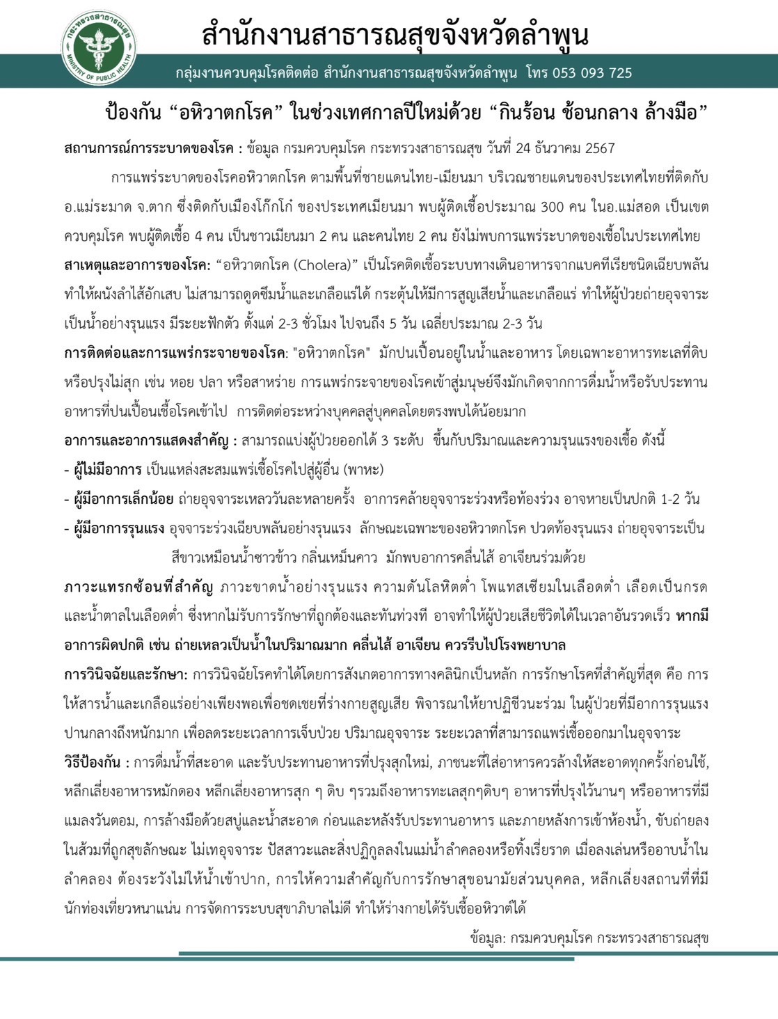 ชื่อเรื่อง : ประชาสัมพันธ์องค์การบริหารส่วนตำบลแม่ลาน จากส่วนงานสาธารณสุขฯองค์การบริหารส่วนตำบลแม่ลาน เรื่อง เฝ้าระวังโรคอหิวาตกโรค