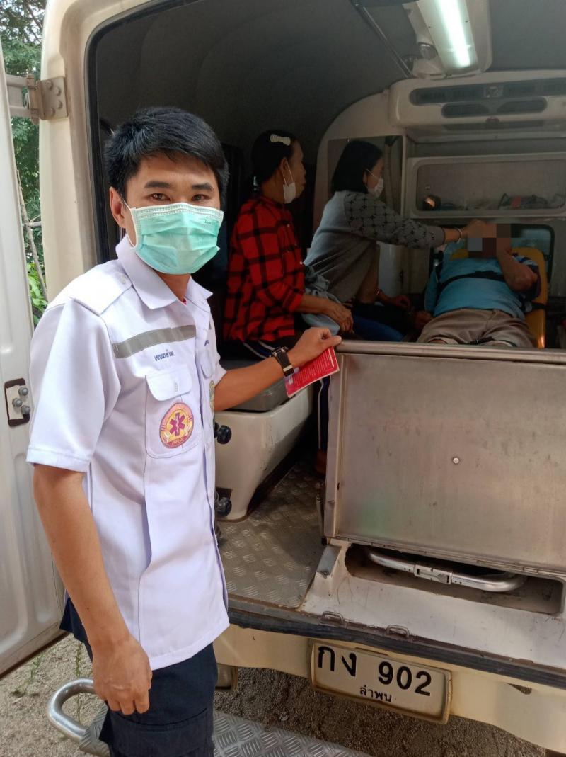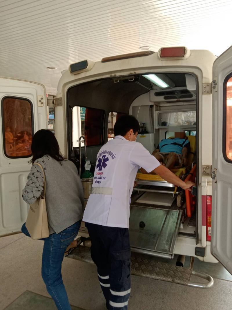 ออกเหตุรับผู้ป่วย บ้านแม่กองวะ หมู่ที่ 4 ตำบลแม่ลาน มีอาการแขนขาอ่อนแรง นำตัวส่งโรงพยาบาลลี้ อำเภอลี้ จังหวัดลำพูน เพื่อทำการรักษาต่อไป
