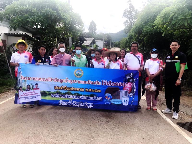วันที่ 12 กรกฎาคม 2566 องค์การบริหารส่วนตำบลแม่ลาน นำโดย นายโสภณ มีมัง นายกองค์การบริหารส่วนตำบลแม่ลาน มอบหมายให้ นายสมสมัย ปองนาน ปลัดองค์การบริหารส่วนตำบลแม่ลาน นายประวิทย์ ล่าเพ็ง ผู้อํานวยการกองการศึกษาฯ และนายเอนก สีวิจี๋ ผู้ช่วยนักวิเคราะห์นโยบายและแผน ร่วมกับ รพ.สต.แม่ลาน ผู้นำชุมชนและอสม.บ้านหนองมะล้อ หมู่ที่ 2 ลงพื้นที่ทำลายแหล่งเพาะพันธุ์ลูกน้ำยุงลาย เพื่อป้องกันโรคไข้เลือดออก ภายในพื้นที่บ้านหนองมะล้อ หมู่ที่ 2 ตามโครงการรณรงค์กำจัดลูกน้ำยุงลายและป้องกันไข้เลือดออก ประจำปีงบประมาณ พ.ศ.2566