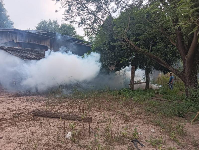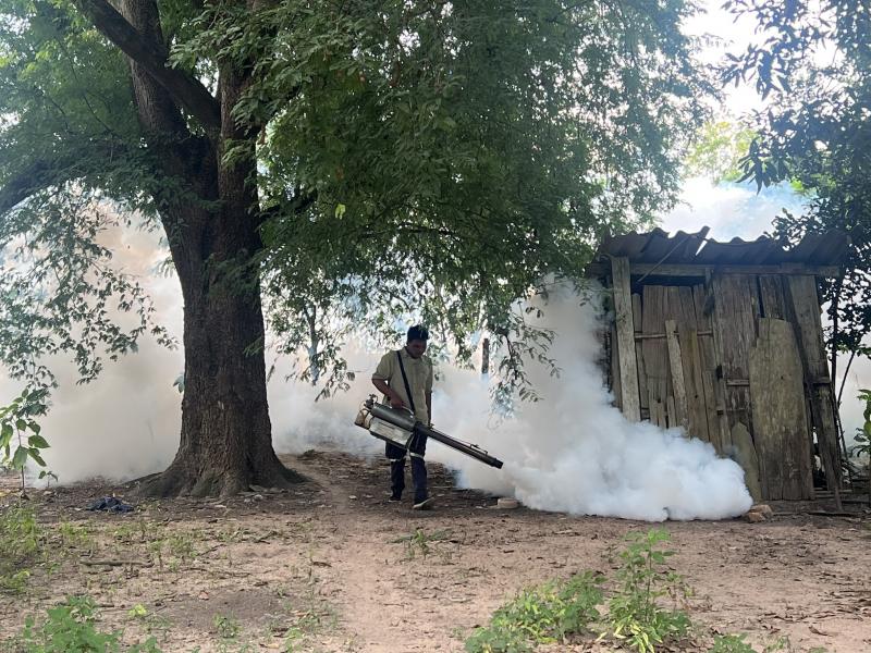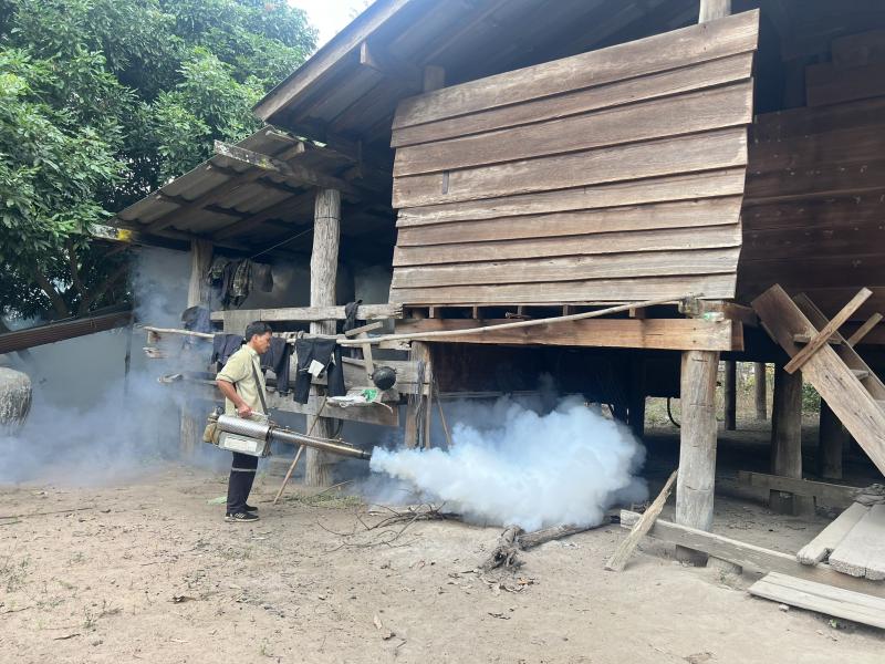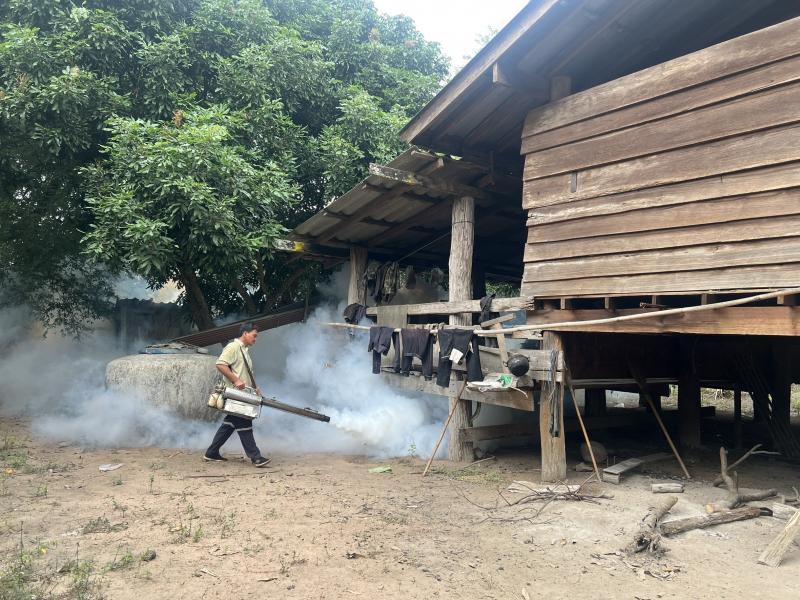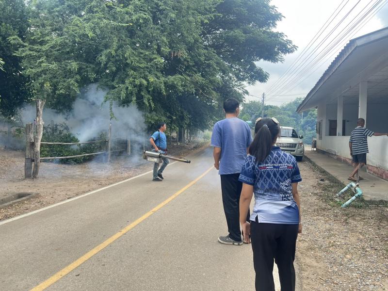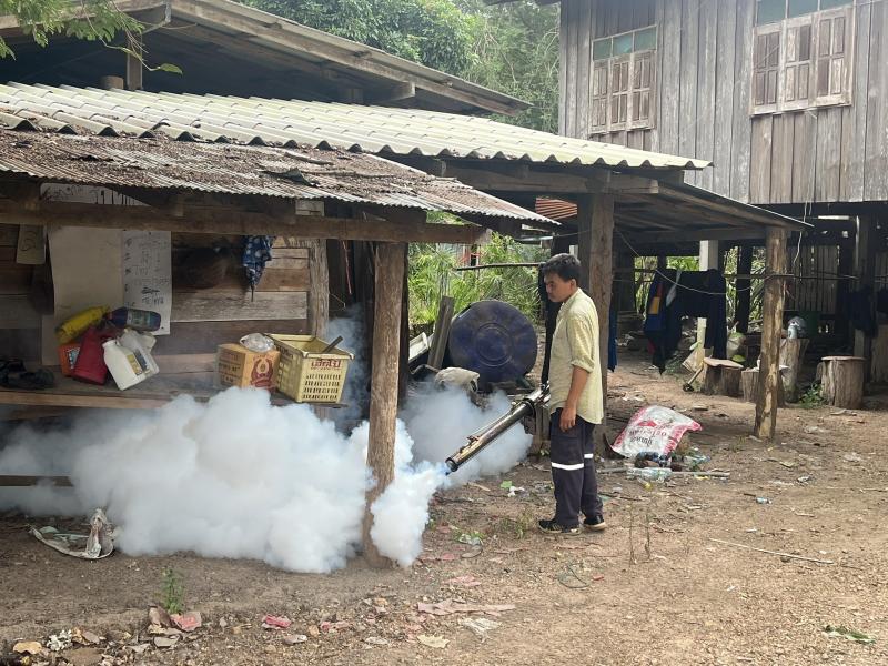 ลงพื้นที่ดำเนินการพ่นหมอกควัน และทำลายแหล่งเพาะพันธุ์ลูกน้ำยุงลาย เพื่อกำจัดยุงตัวแก่ และควบคุมป้องกันการระบาดของโรคไข้ปวดข้อยุงลาย (ชิคุนกุนยา) บริเวณบ้านผู้ป่วย บ้านห้วยทรายขาว หมู่ที่ 7 ตำบลแม่ลาน อำเภอลี้ จังหวัดลำพูน ระยะ 100 เมตร ครั้งที่ 2