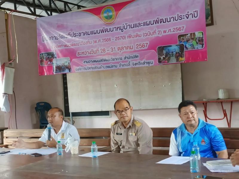 วันที่ 30 ตุลาคม 2567 เวลา 13.00 น. องค์การบริหารส่วนตำบลแม่ลาน นำโดย นายโสภณ มีมัง นายกองค์การบริหารส่วนตำบลแม่ลาน พร้อมด้วยคณะผู้บริหาร ข้าราชการ พนักงาน และเจ้าที่องค์การบริหารส่วนตำบลแม่ลาน ร่วมจัดโครงการจัดเวทีประชาคมทบทวนแผนพัฒนาหมู่บ้านและแผนพัฒนาประจำปี เพื่อจัดทำแผนท้องถิ่น (พ.ศ. 2566-2570) เพิ่มเติม (ฉบับที่ 2) พ.ศ. 2567 ขององค์การบริหารส่วนตำบลแม่ลาน ให้เป็นไปตามระเบียบกระทรวงมหาดไทย ว่าด้วยการจัดทำแผนพัฒนาขององค์กรปกครองส่วนท้องถิ่น พ.ศ.2548 แก้ไขเพิ่มเติม (ฉบับที่ 3) พ.ศ.2561 เป็นการส่งเสริมการมีส่วนร่วมของประชาชน ในการจัดทำแผนของชุมชน ณ บ้านเด่นเหม้า หมู่ที่ 5 ตำบลแม่ลาน อำเภอลี้ จังหวัดลำพูน