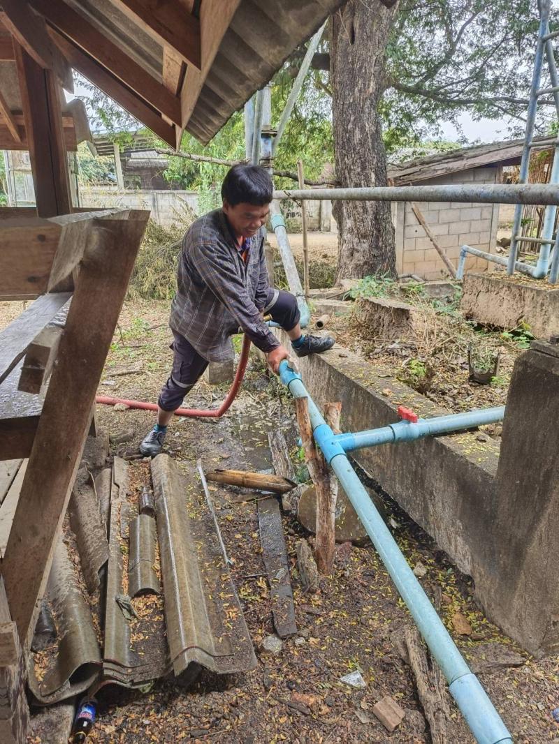 ลงพื้นที่เป่าล้างท่อน้ำอุดตัน บ้านแม่กองวะ หมู่ที่ 4 ตำบลแม่ลาน อำเภอลี้ จังหวัดลำพูน เพื่อให้ท่อน้ำที่ใช้มีความสะอาด และไม่ให้ทรายอุดตันบ่อ